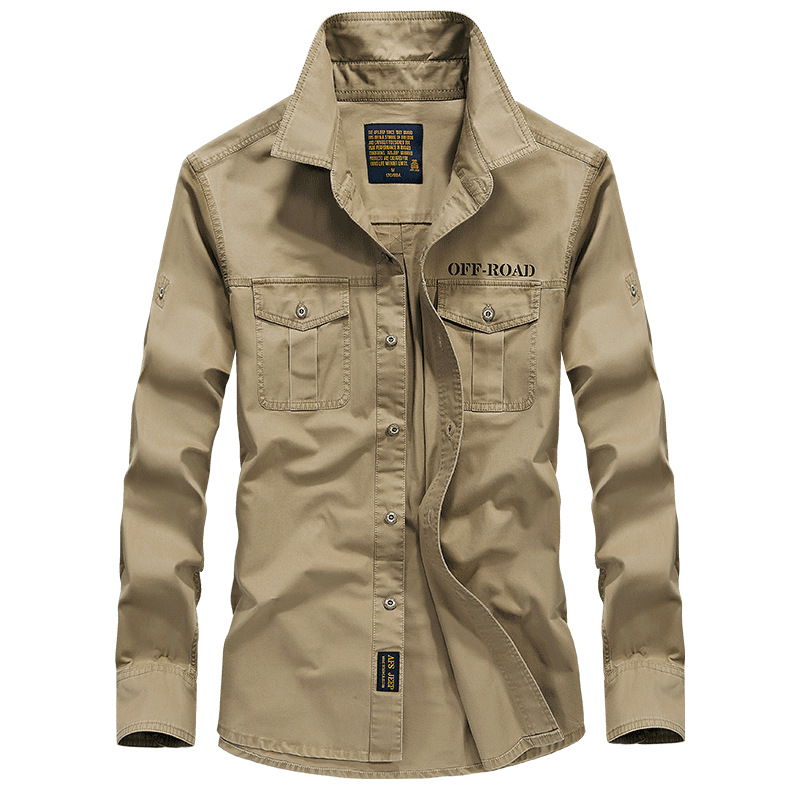 Long Sleeve Shirt Men's Autumn Large Size Loose Cotton Military Shirt Solid Color Casual Top