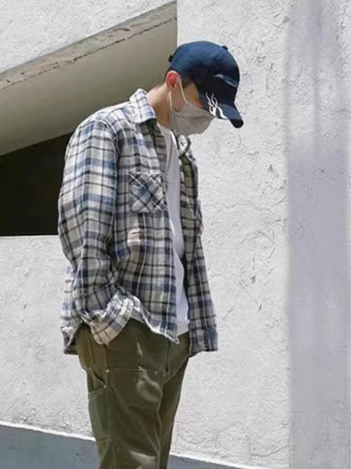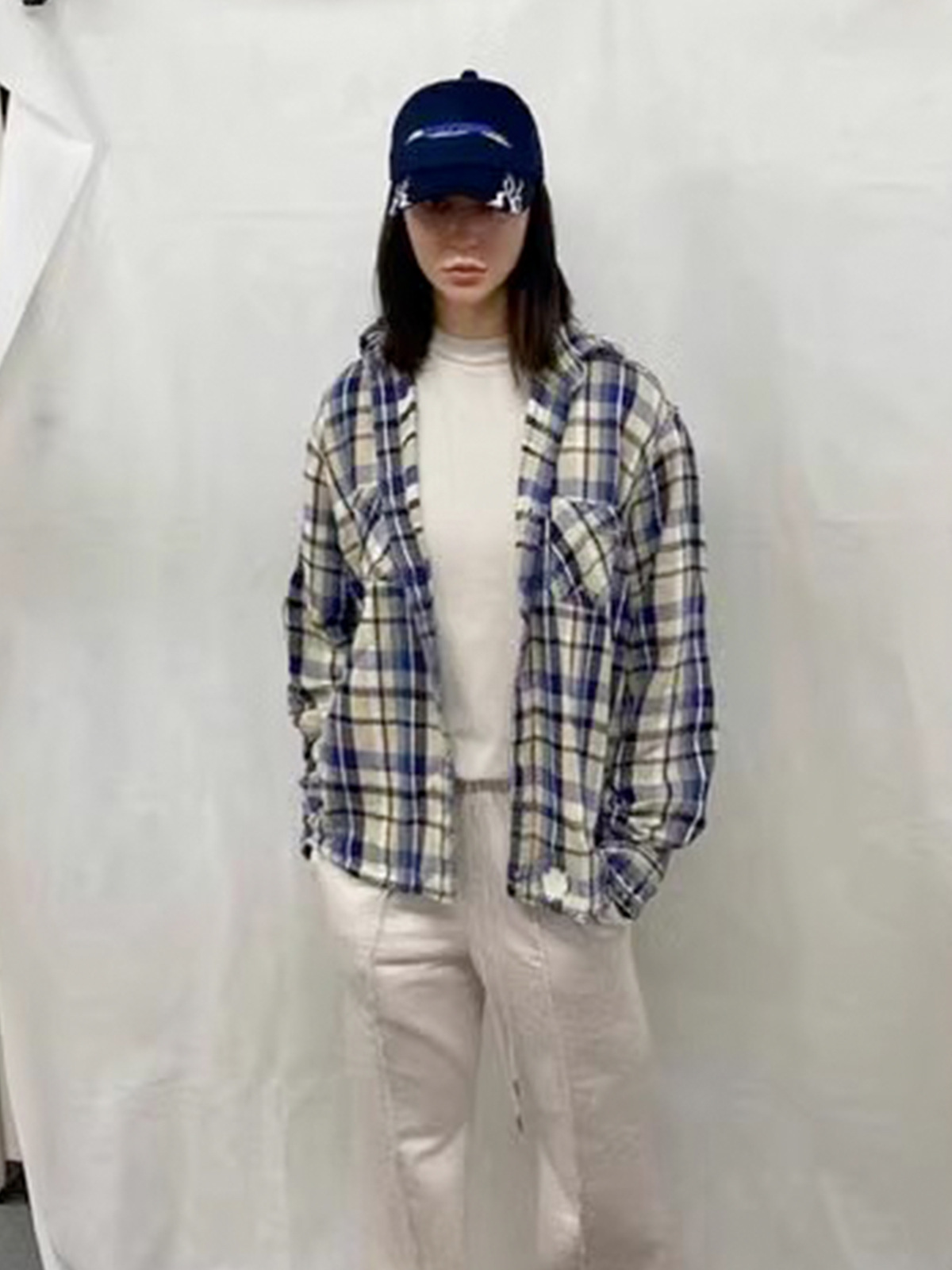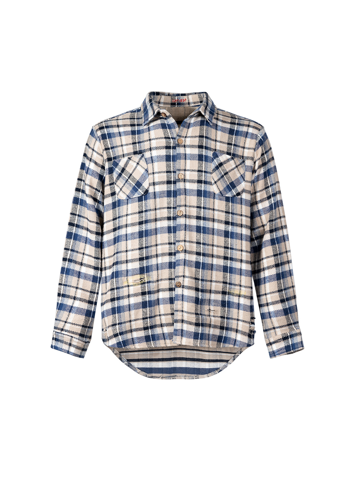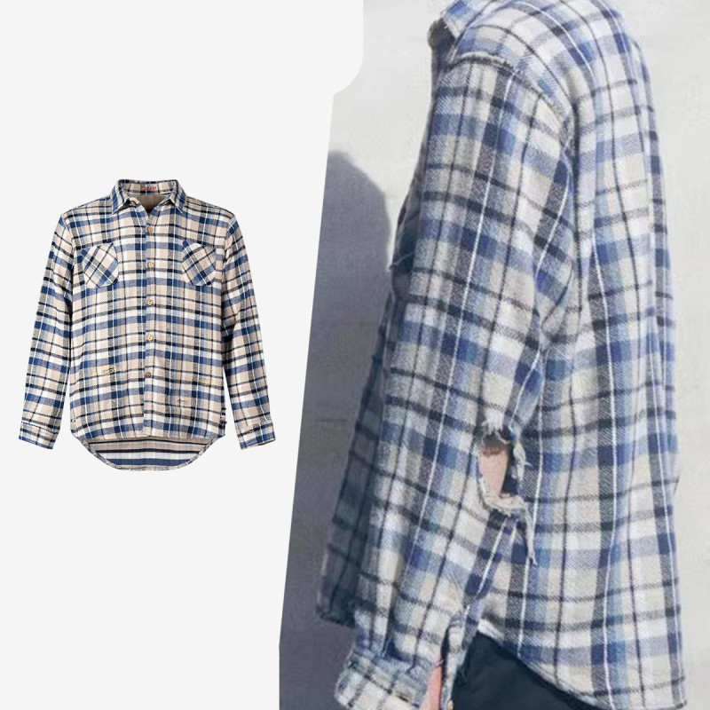 Long Sleeve Shirt Short Front And Long Back Damaged Craft Plaid