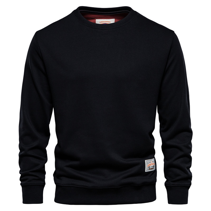 Long Sleeve Solid Color Hoodie Street Loose Round Neck Men's Sports Base