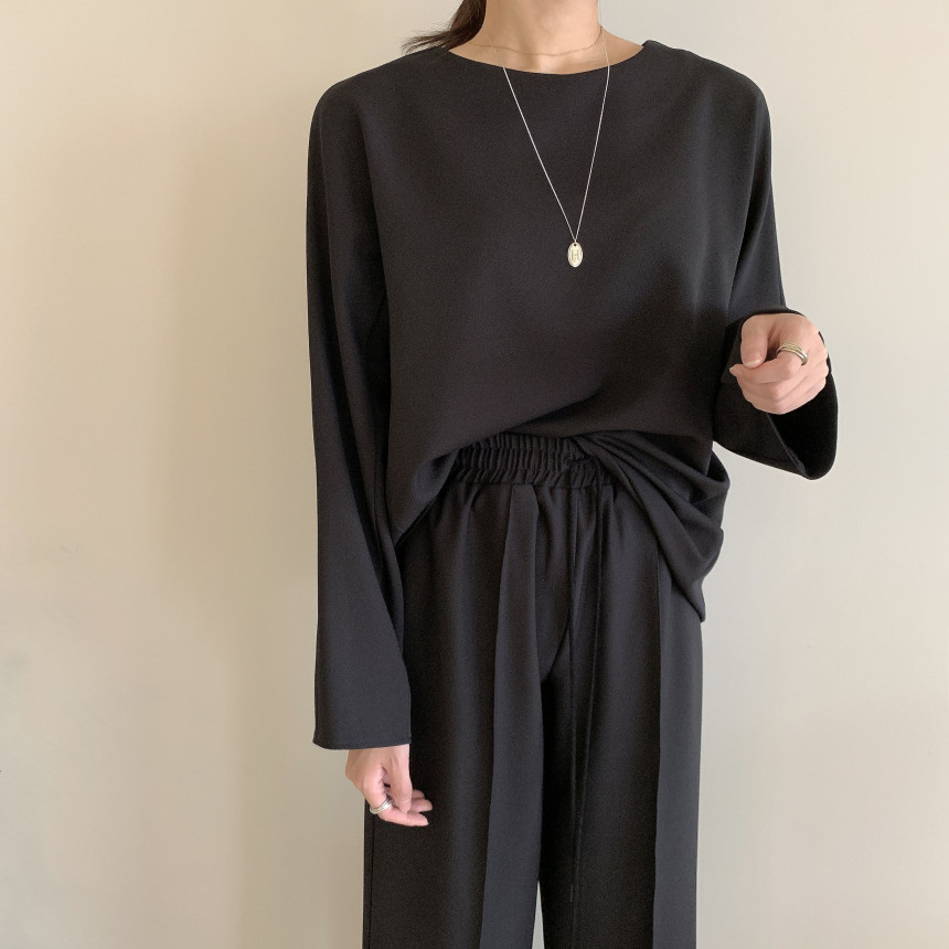 Long Sleeve Top High Waist Straight Wide Leg Casual Pants Two-piece Set