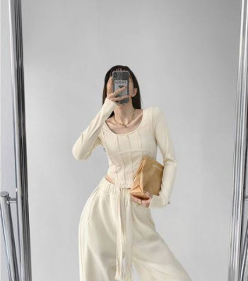 Long Sleeve Undercoat Women's Short Plastic Fishbone Waist Shirt