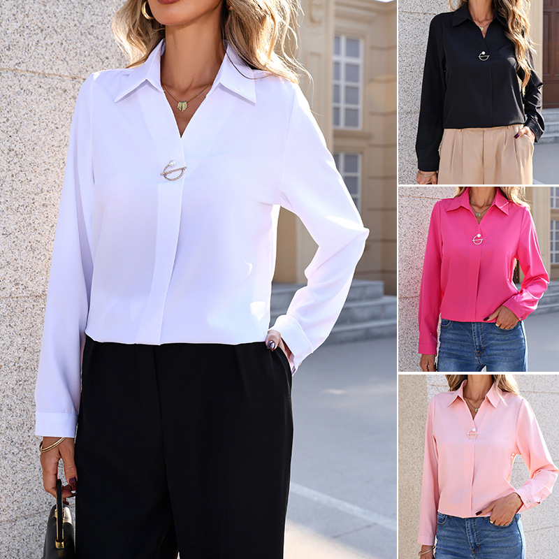 Trendy Elements: V-Neck, Solid Color, Metal Accents