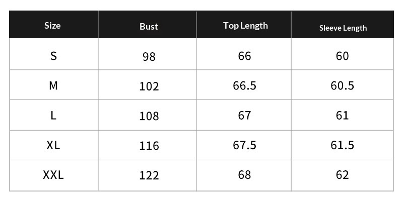 Sizes: S, M, L, XL, XXL