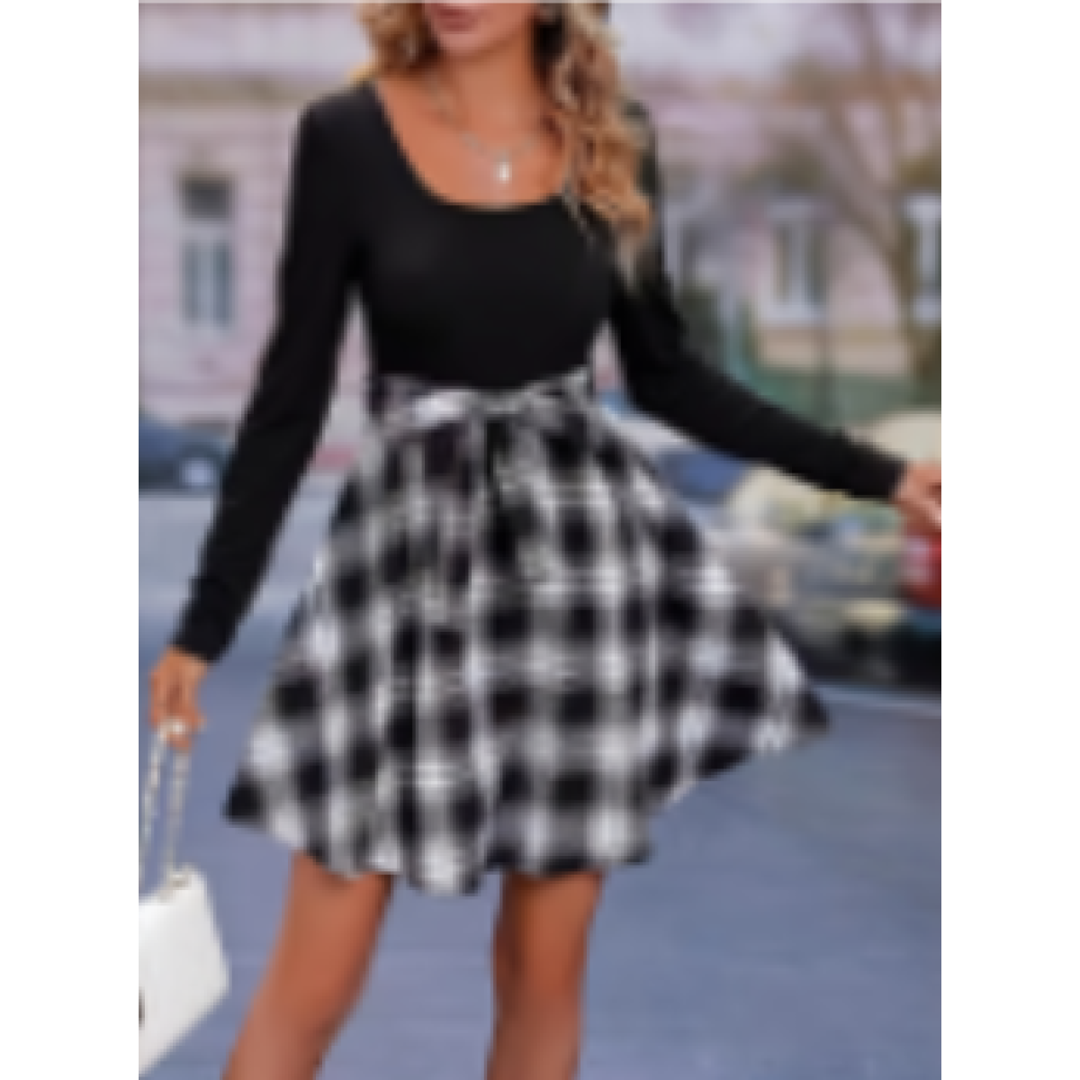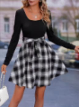 Long-sleeved Black And White Checked Dress