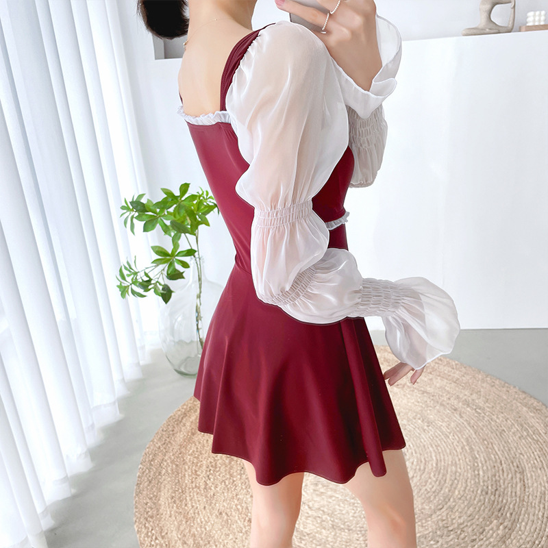 Long-sleeved Conservative Bathing Hot Springs Cover The Belly And Show Thin One-piece Skirt Swimsuit