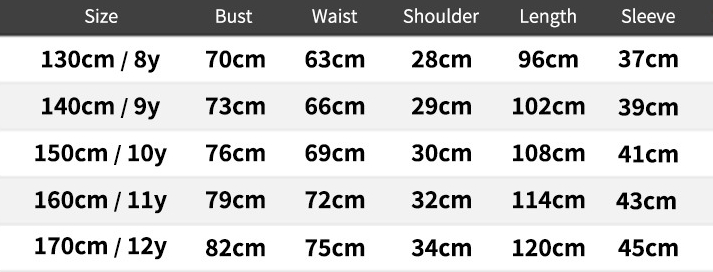 Suitable height: 130cm/8Y,140cm/9Y,150cm/10Y,160cm/11Y,170cm/12Y