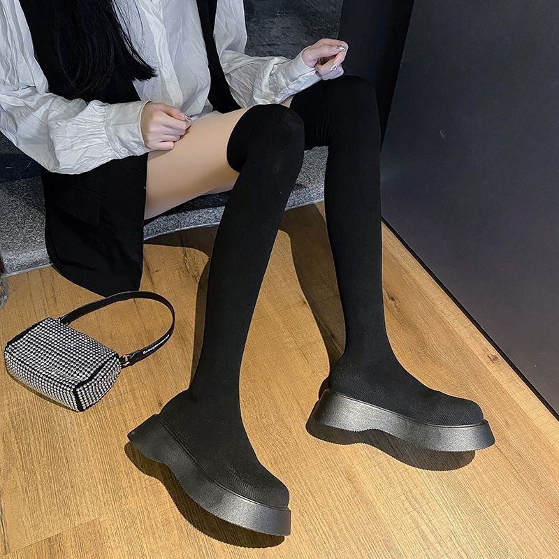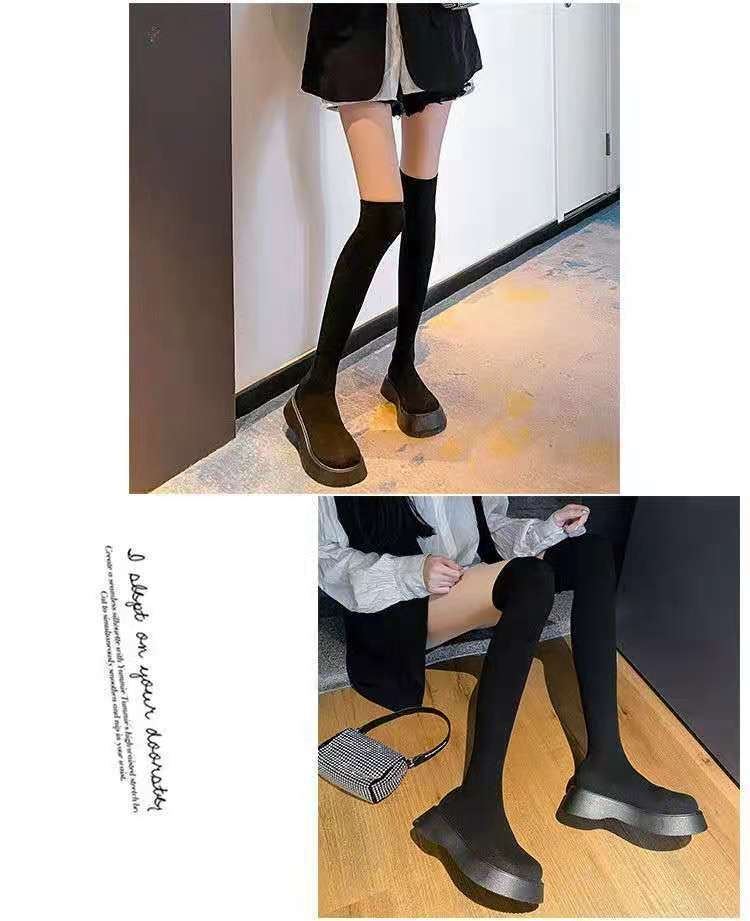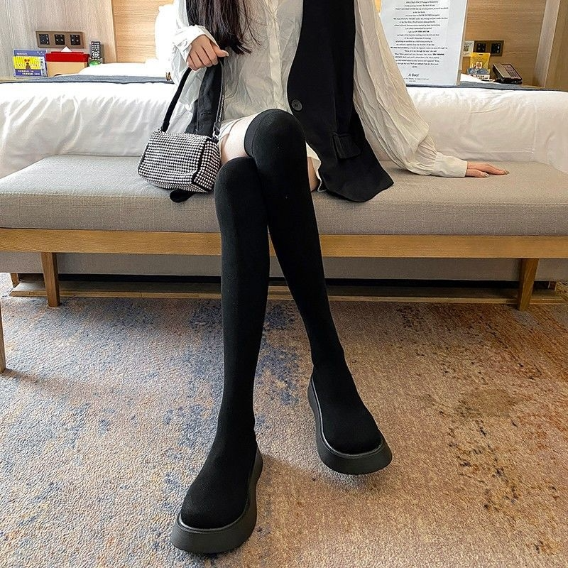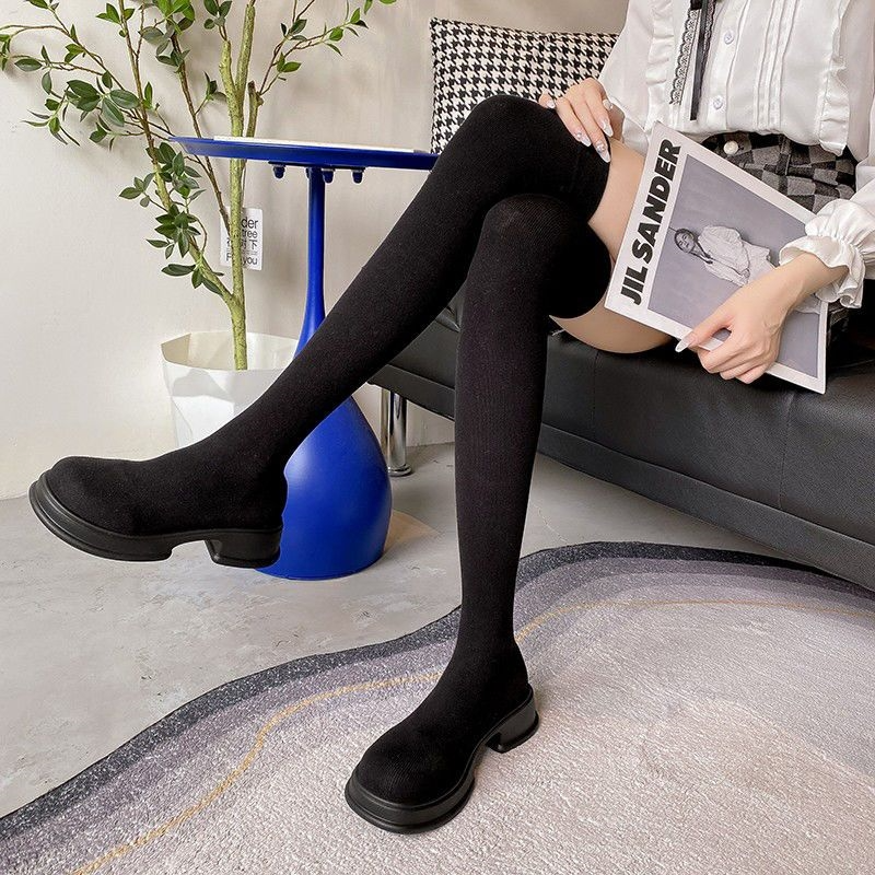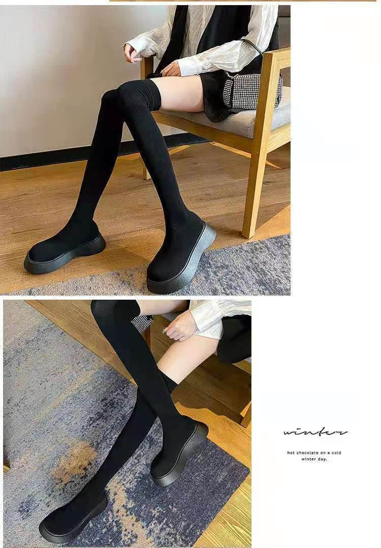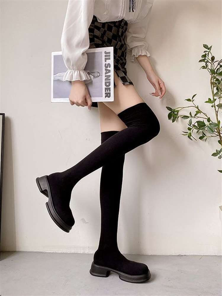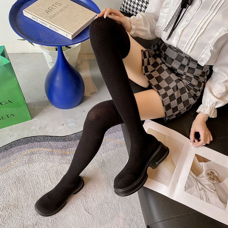 Long Sleeved Women's New Versatile Knitted Elastic Knee Socks And Boots