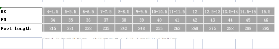 Size: 34, 35, 36, 37, 38, 39, 40, 41, 42, 43, 44, 45, 46