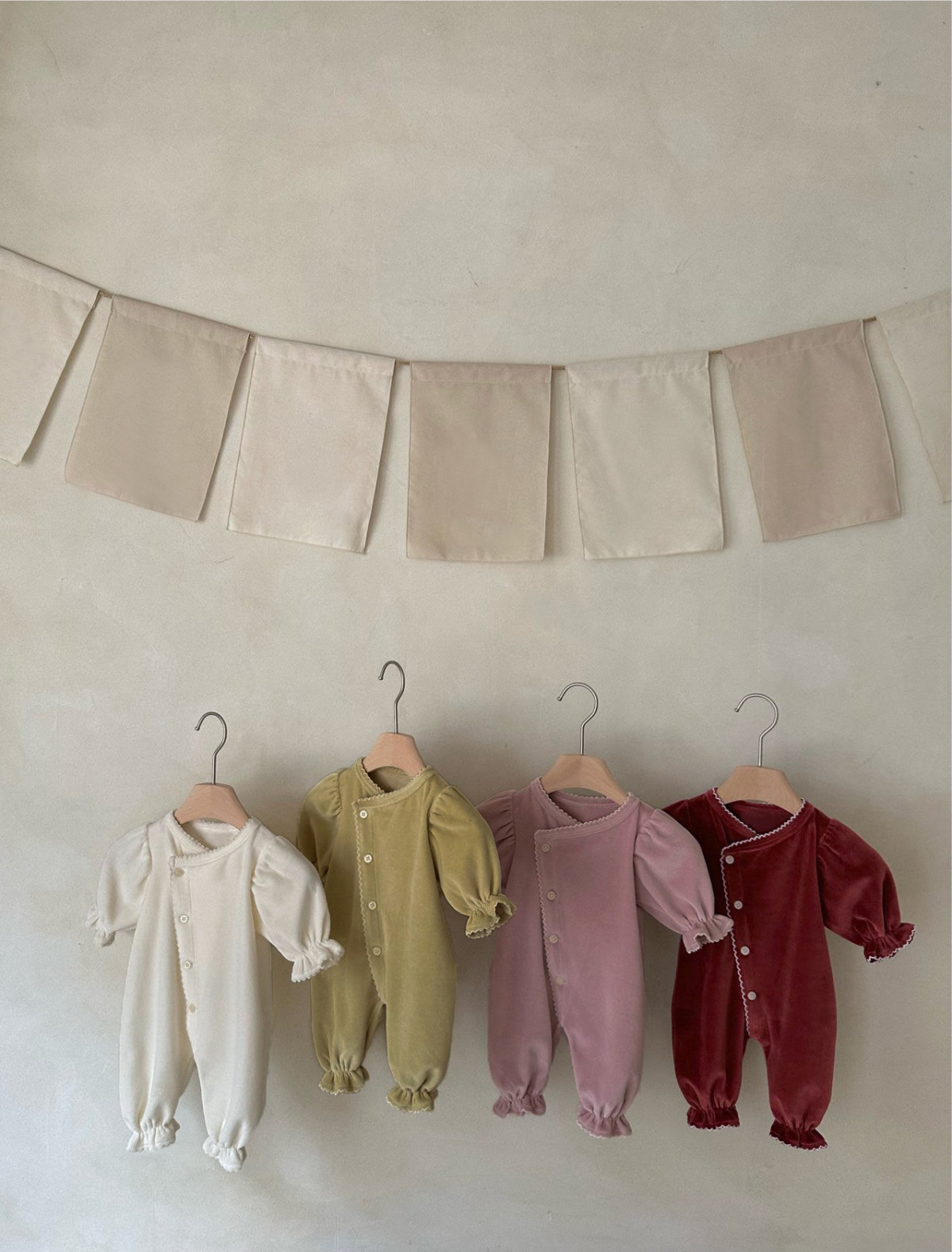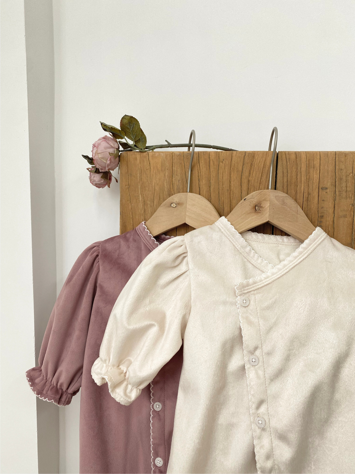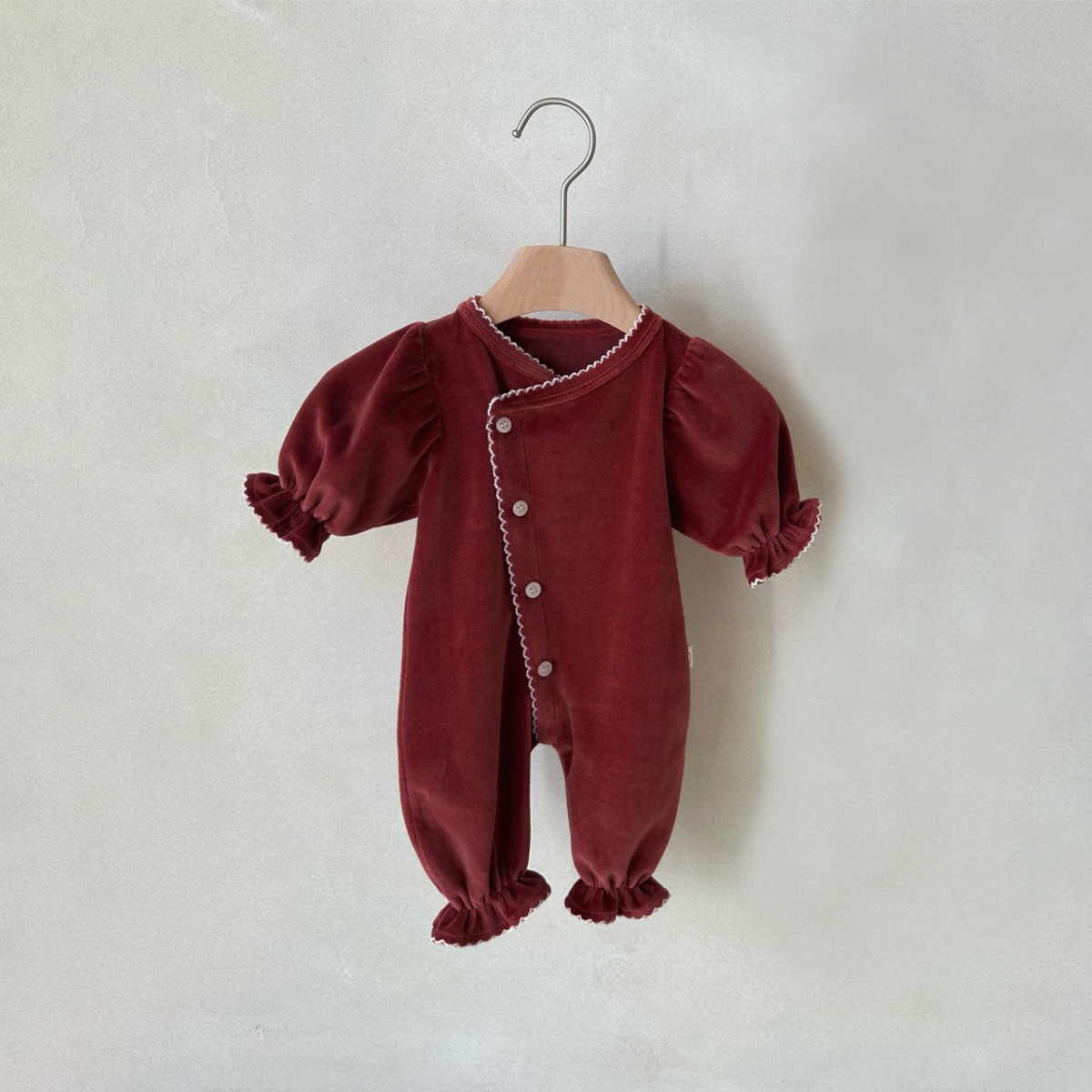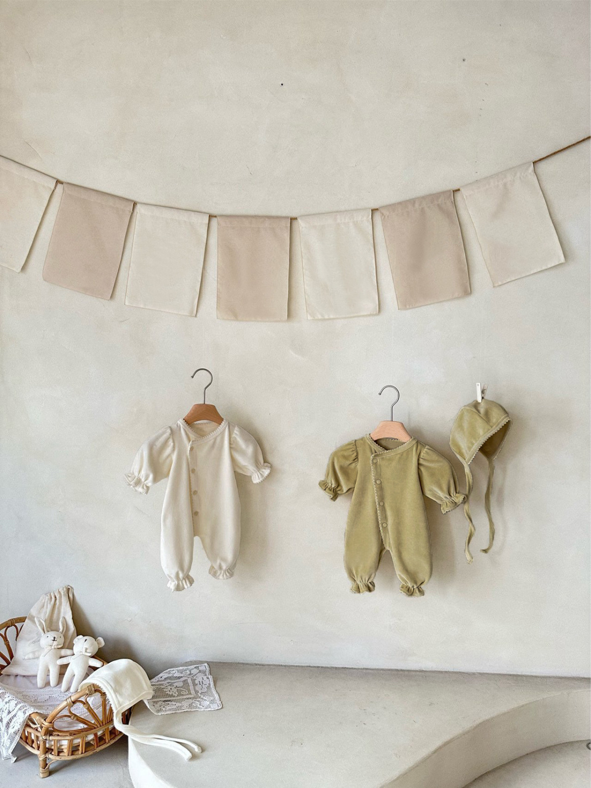 Colors: Cream bodysuit, deep pink bodysuit, mustard yellow bodysuit, wine red bodysuit; cream set (bodysuit + hat), deep pink set (bodysuit + hat), mustard yellow set (bodysuit + hat), wine red set (bodysuit + hat)