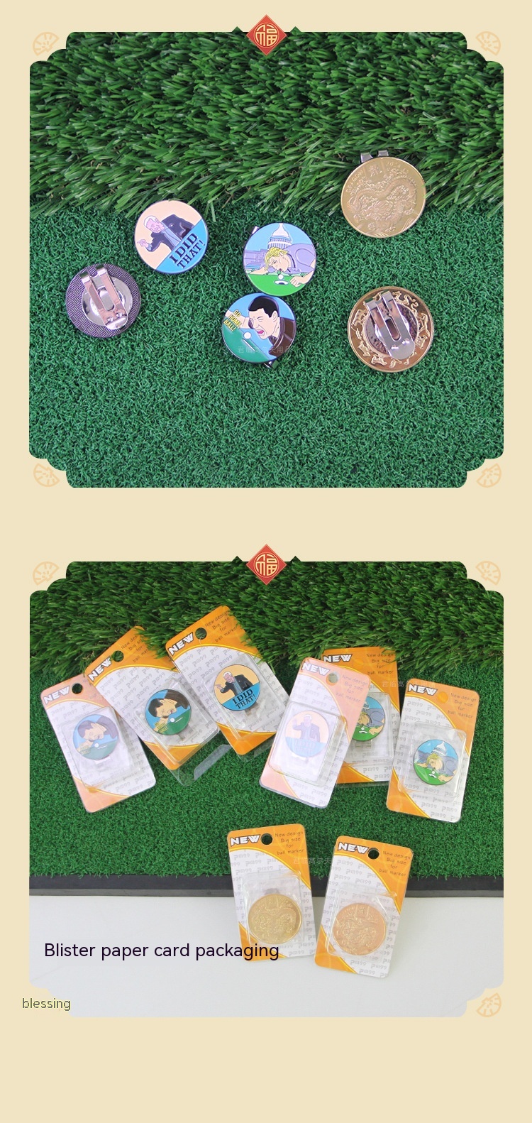 Specifications: Dragon Year hat clip mark, ace lick ball hat clip mark, IDID hat clip mark, black hair blowing machine hat clip mark