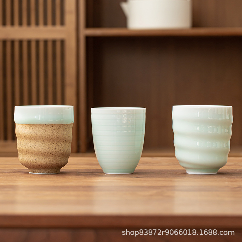 Longquan Celadon Stoneware Tea Cup Espresso Cup Ceramic Handy Cup