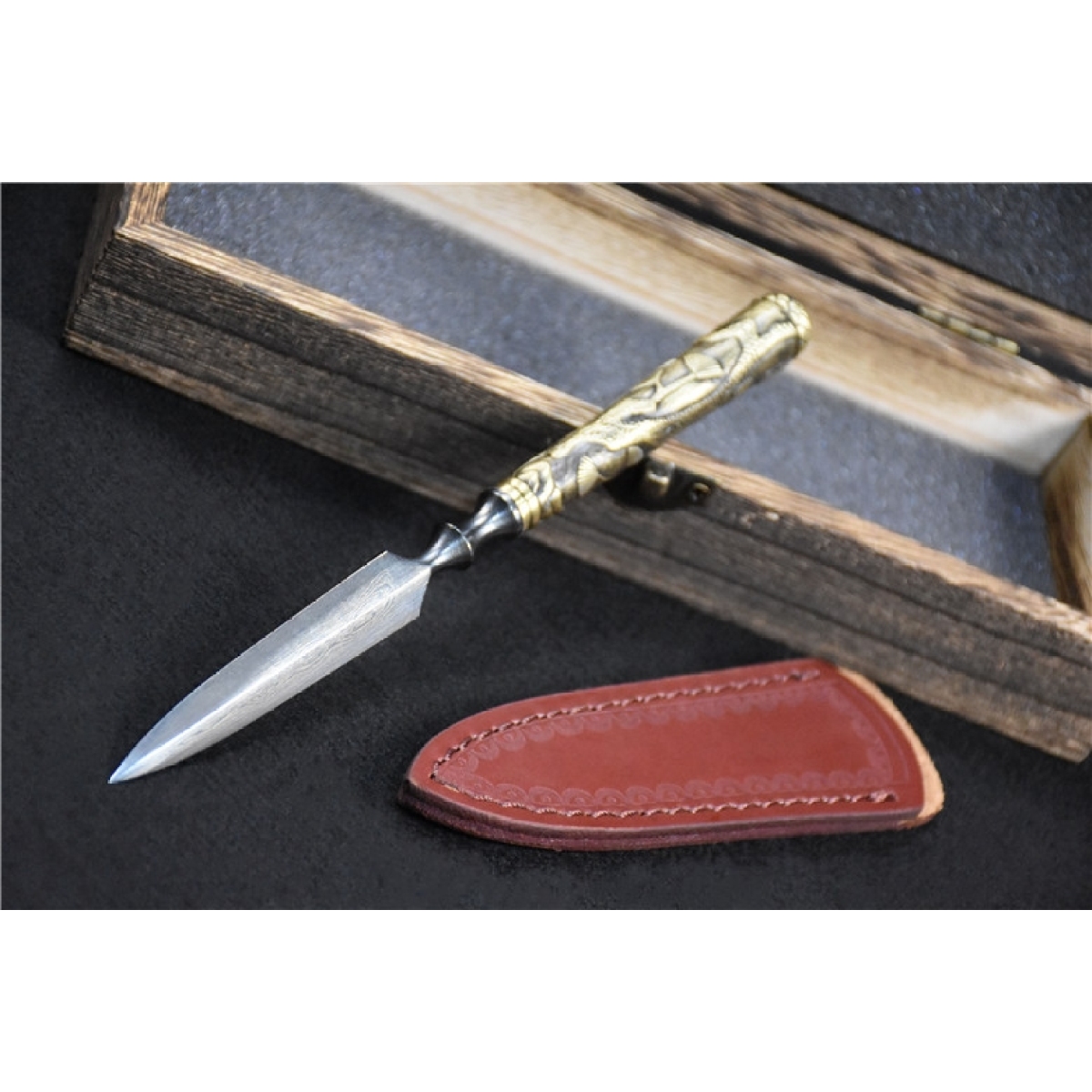 Packing: leather case, high-grade wooden box, knives
