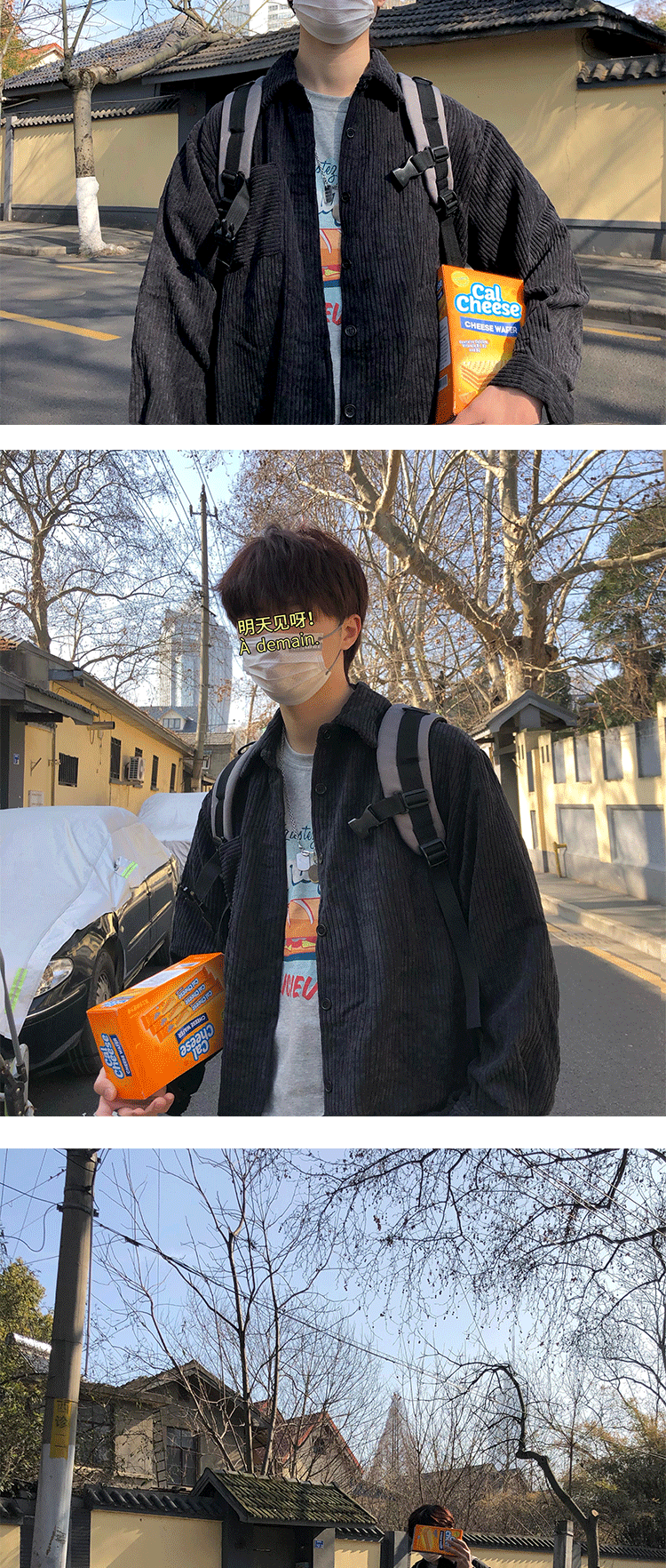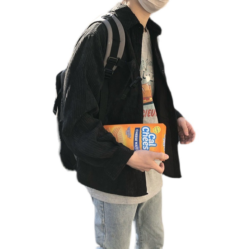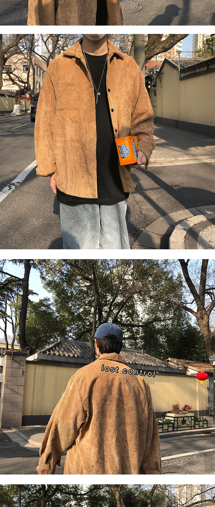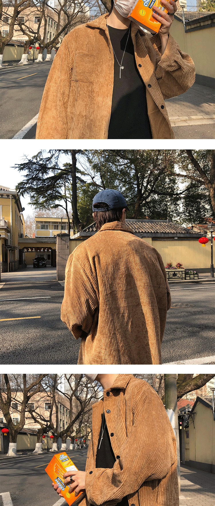 Loose All-match Design Corduroy Vintage Long Sleeve Shirt Men