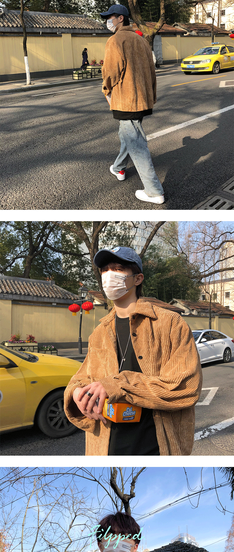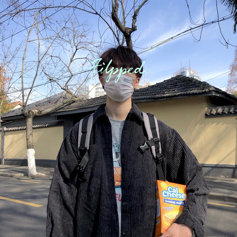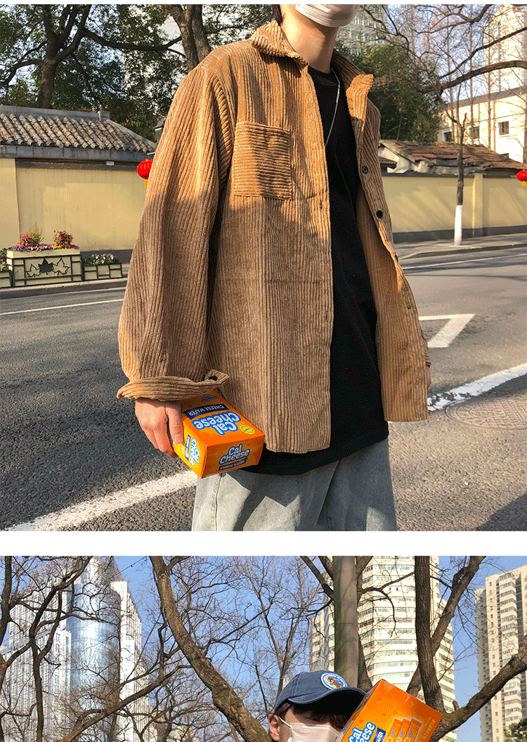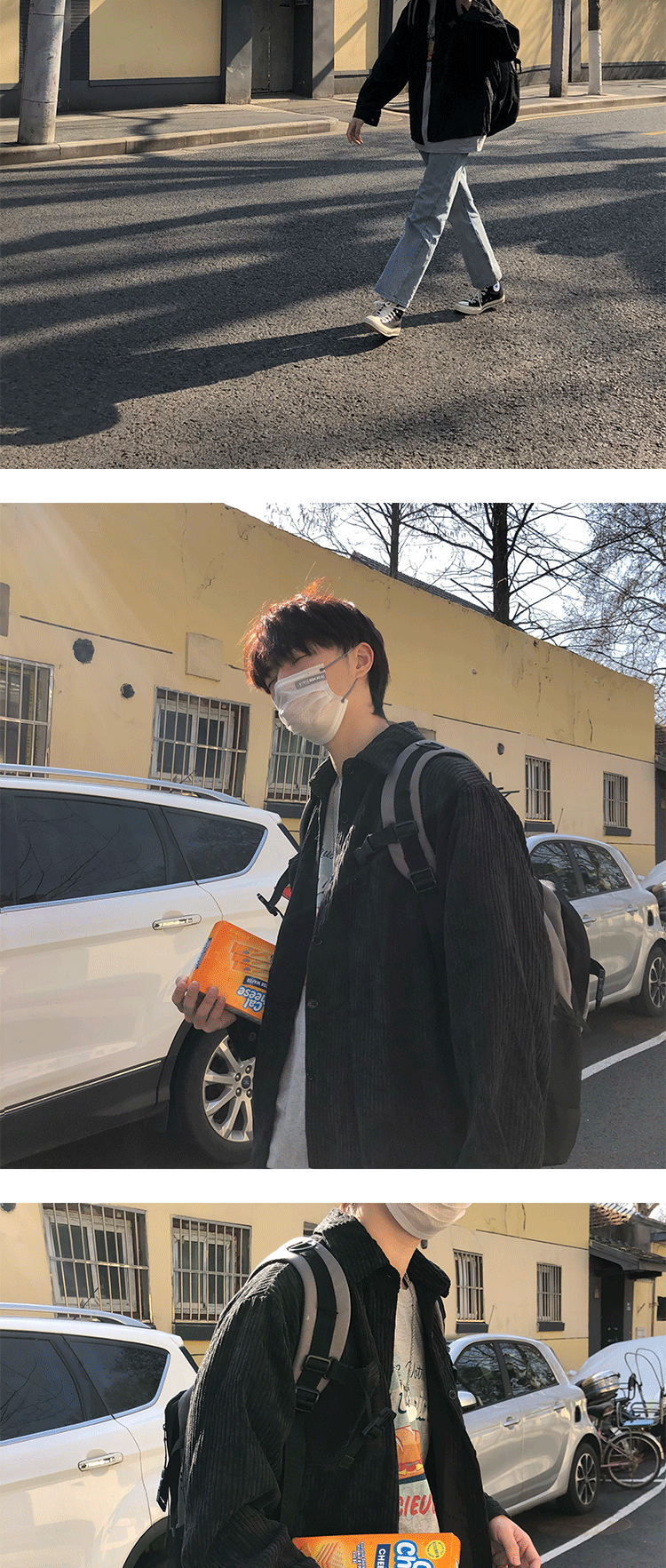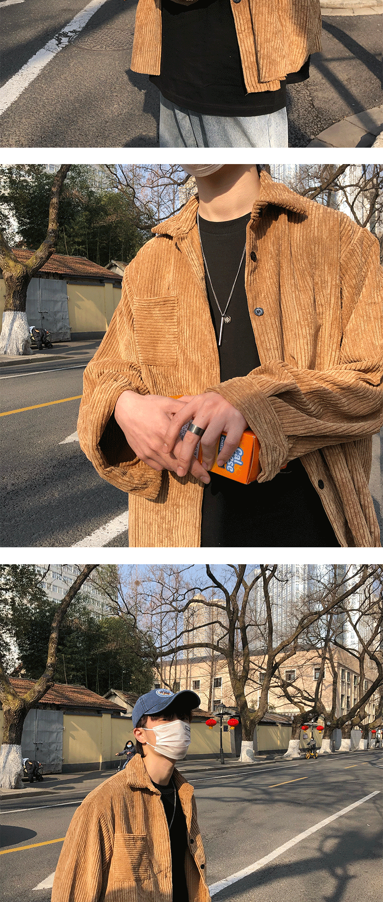 Loose All-match Design Corduroy Vintage Long Sleeve Shirt Men