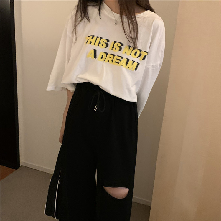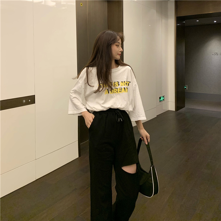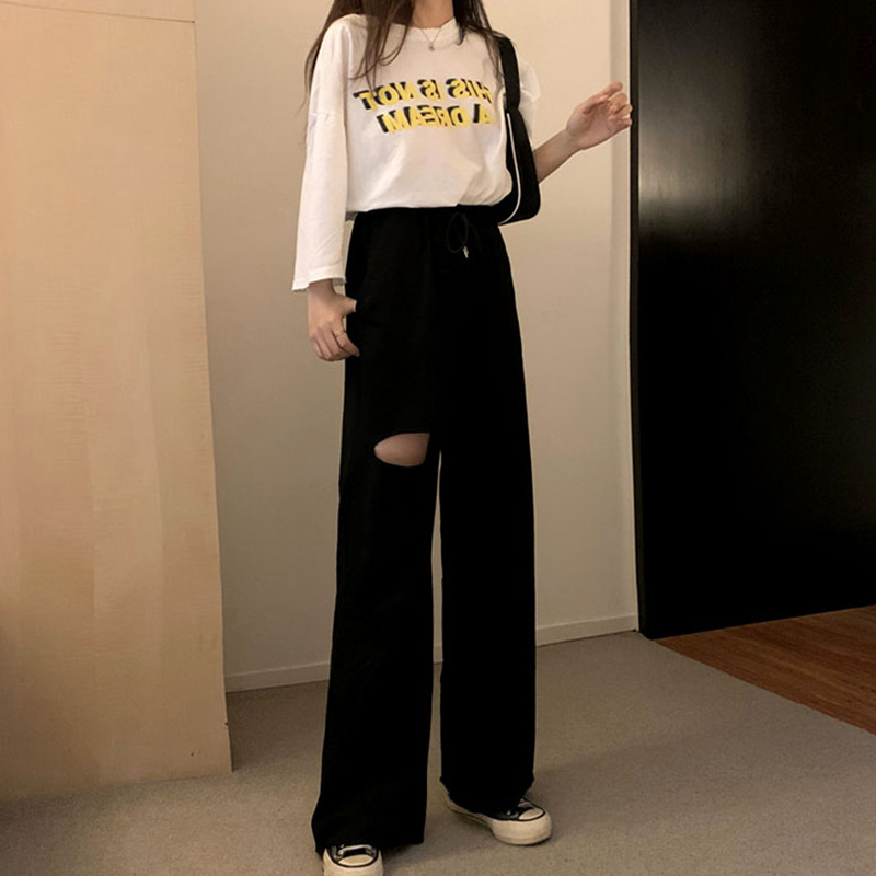Loose All-match Student Drape Ripped Wide-leg Pants