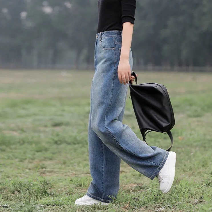 Color: N7804# nostalgic stretch-free wide-leg pants