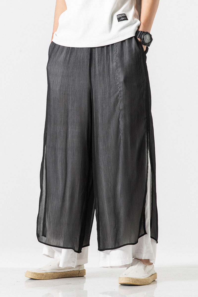 Chinese style Hanfu pants men's Han element wide leg pants men's wide leg pants improved Dahong loose and comfortable casual pants