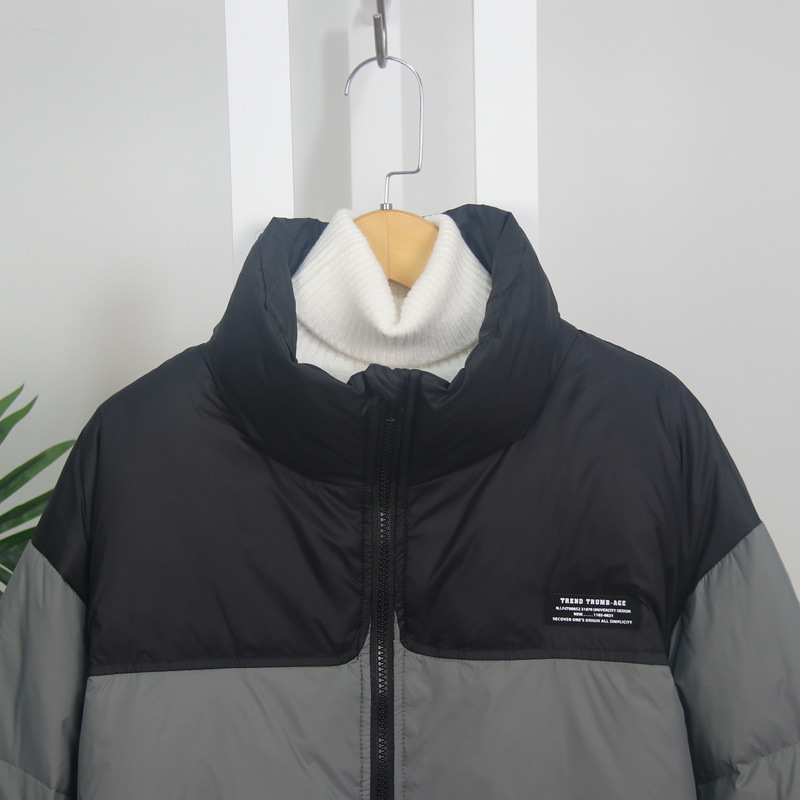 Features:Contrast color, stand-up collar