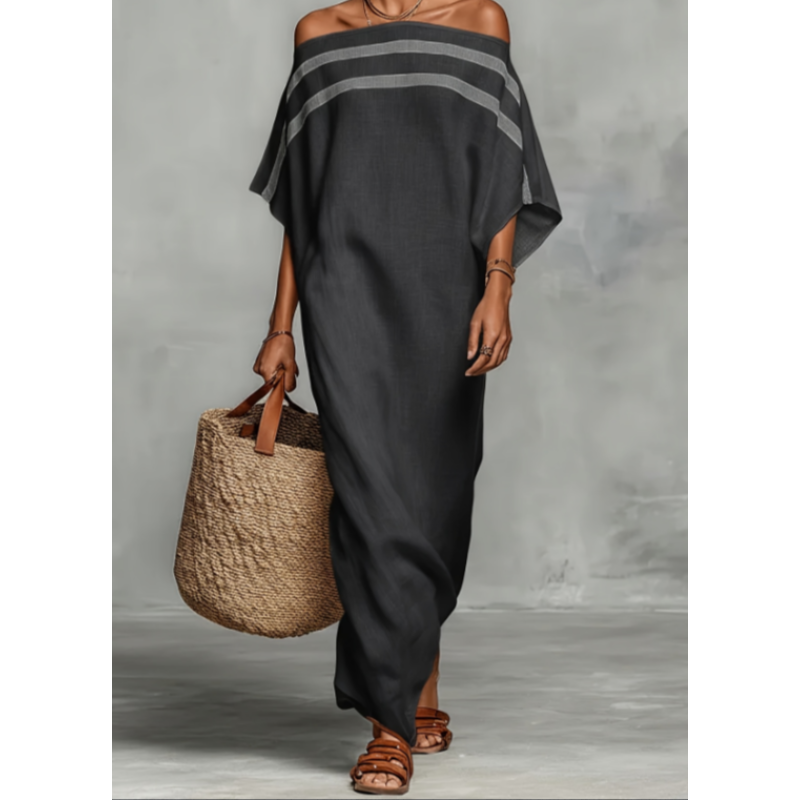 "Loose and Lazy One-Shoulder Dress"Style: Minimalist and relaxed style / Bohemian vacation styleCollar type: One-shoulder off-the-shoulder collarCut: Loose batwing-sleeved long dressUniversal season: Spring, summer, and autumn