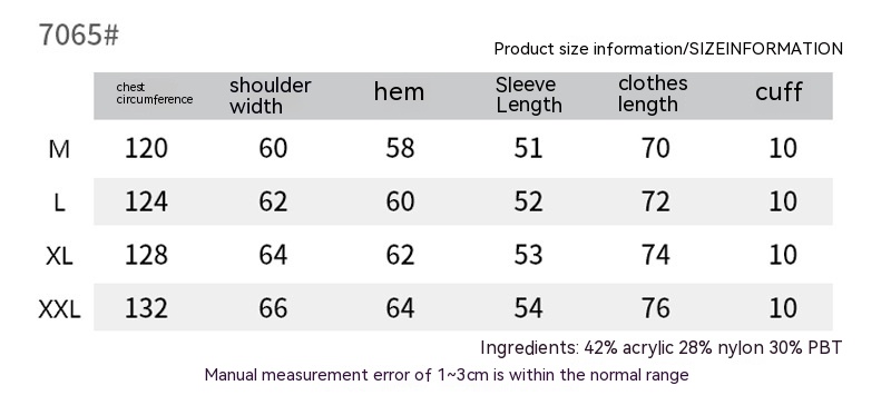 Main fabric composition: acrylic fiber