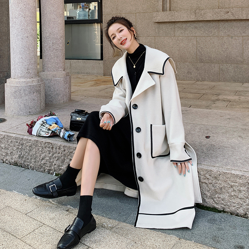 Loose And Thickened Temperament Woolen Coat Mid-length Woolen Coat