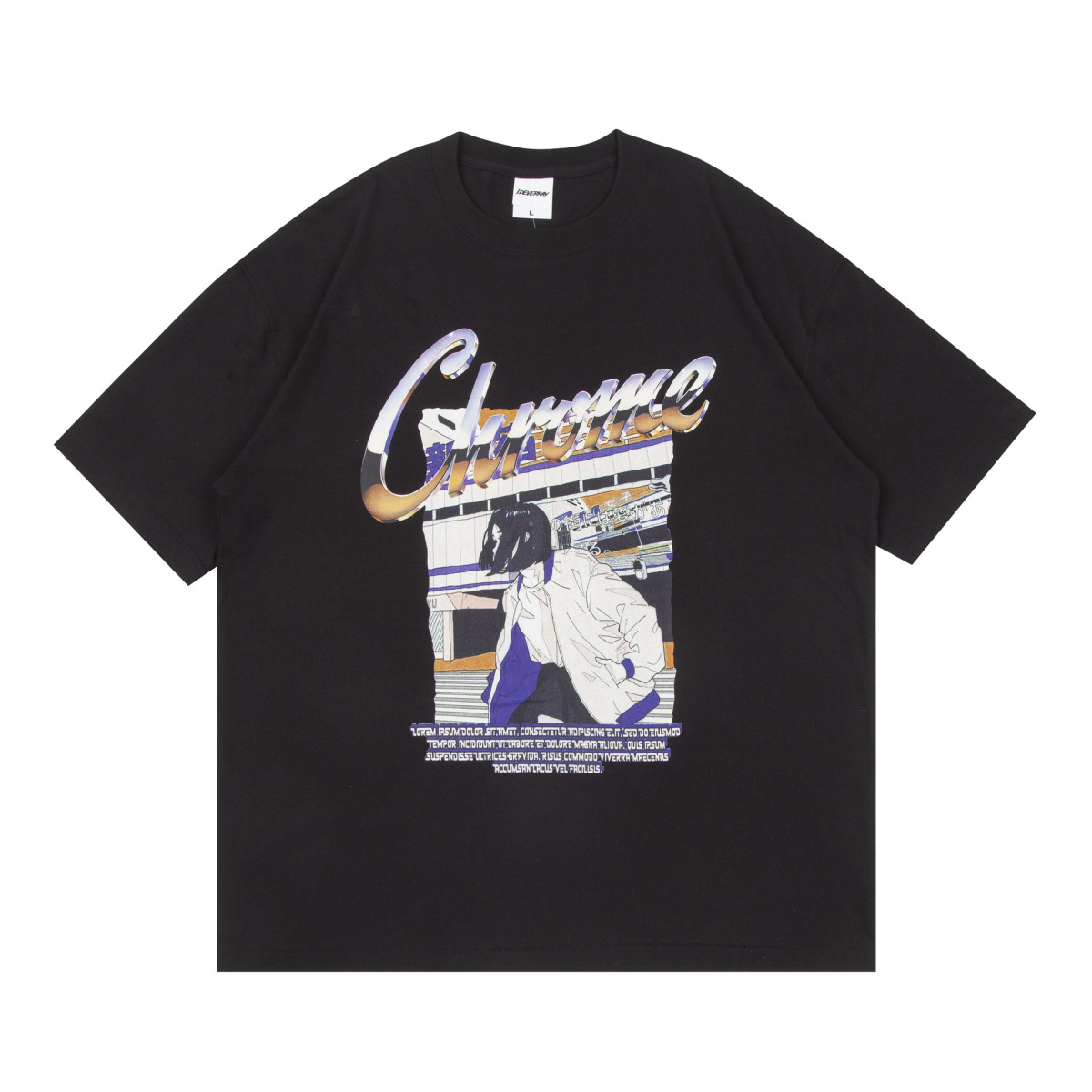 Features: Loose, round neck