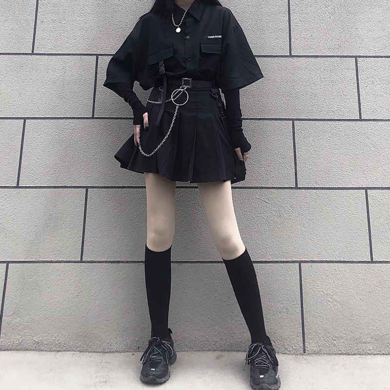 Color: Black shirt, pleated skirt (no chain without Belt), pleated skirt (chain belt), suit (shirt pleated skirt without chain without Belt), suit (shirt pleated skirt with chain belt)