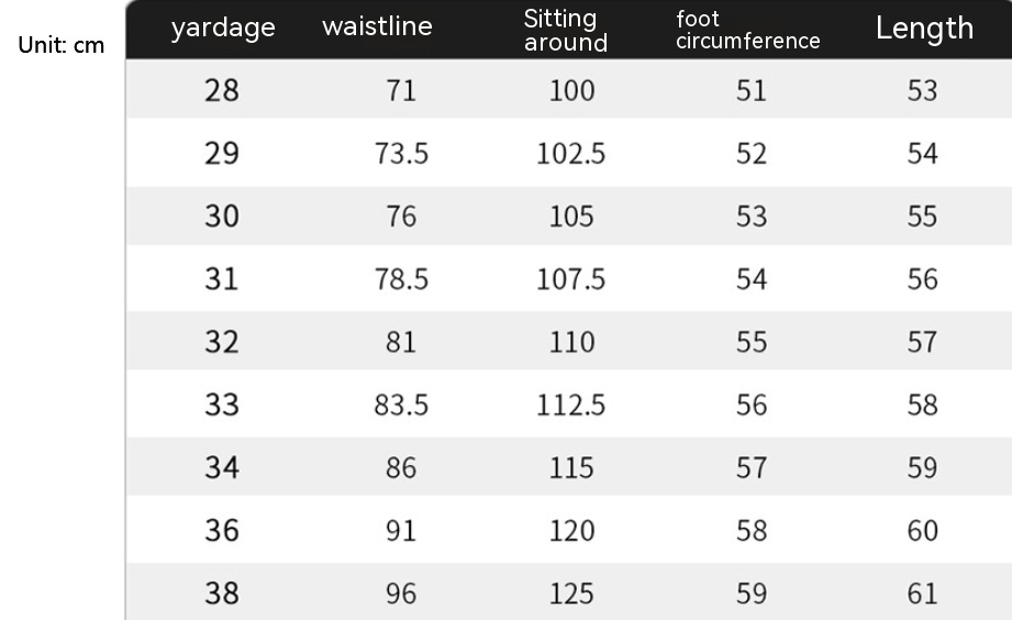 Size: 28, 29, 30, 31, 32, 33, 34, 36, 38