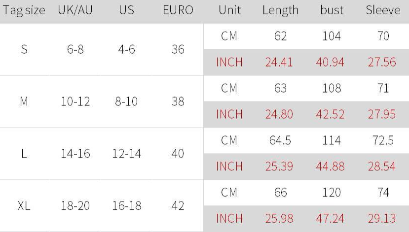 2. Please check the size chart carefully before you buy the item, if you don't know how to choose size, please contact our customer service.