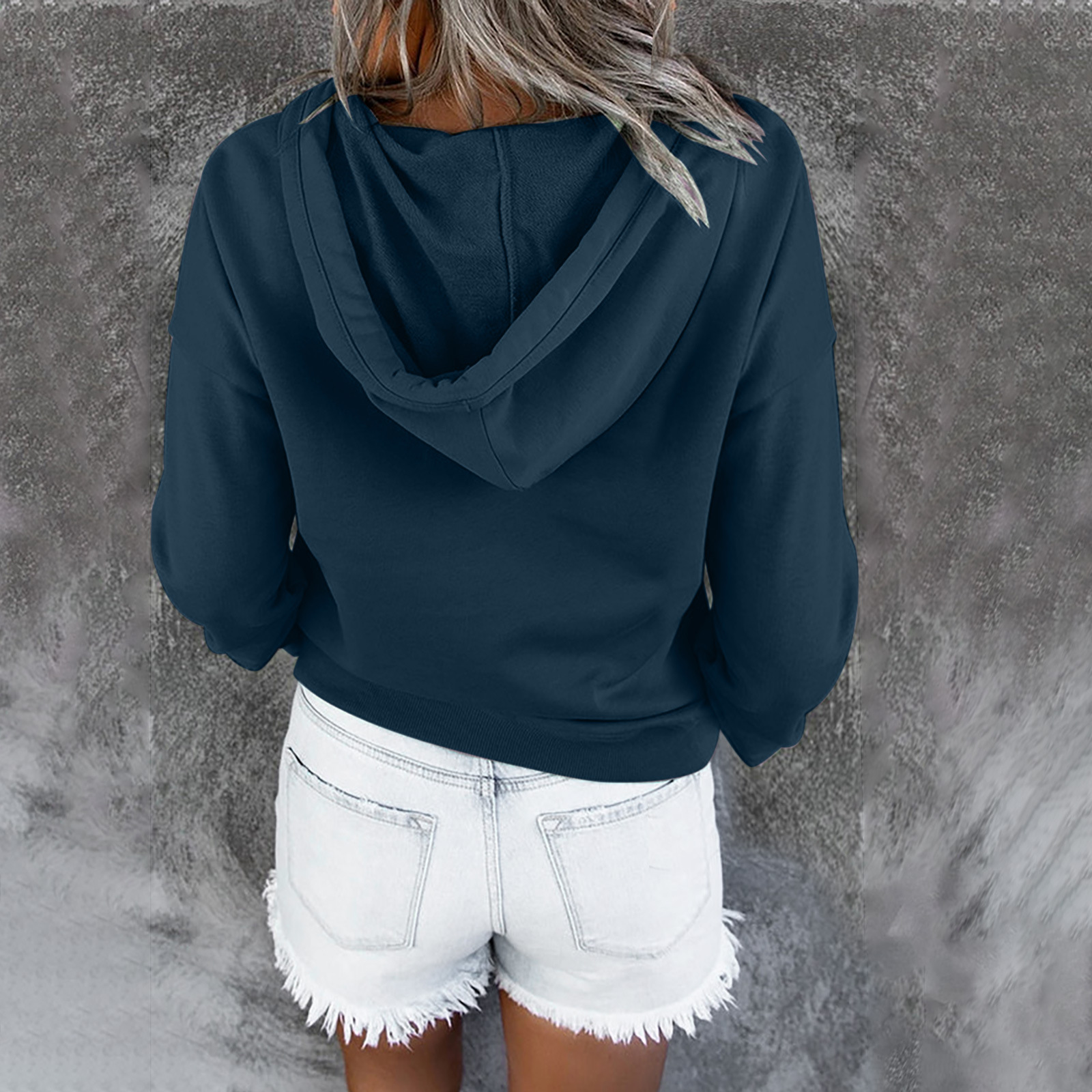 Loose Casual Hooded Drawcord Pocket Button Guard