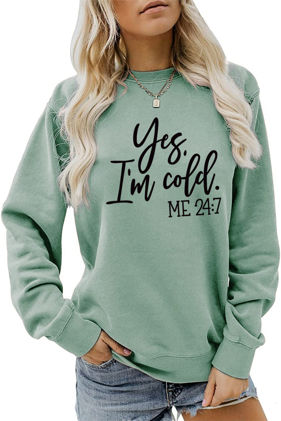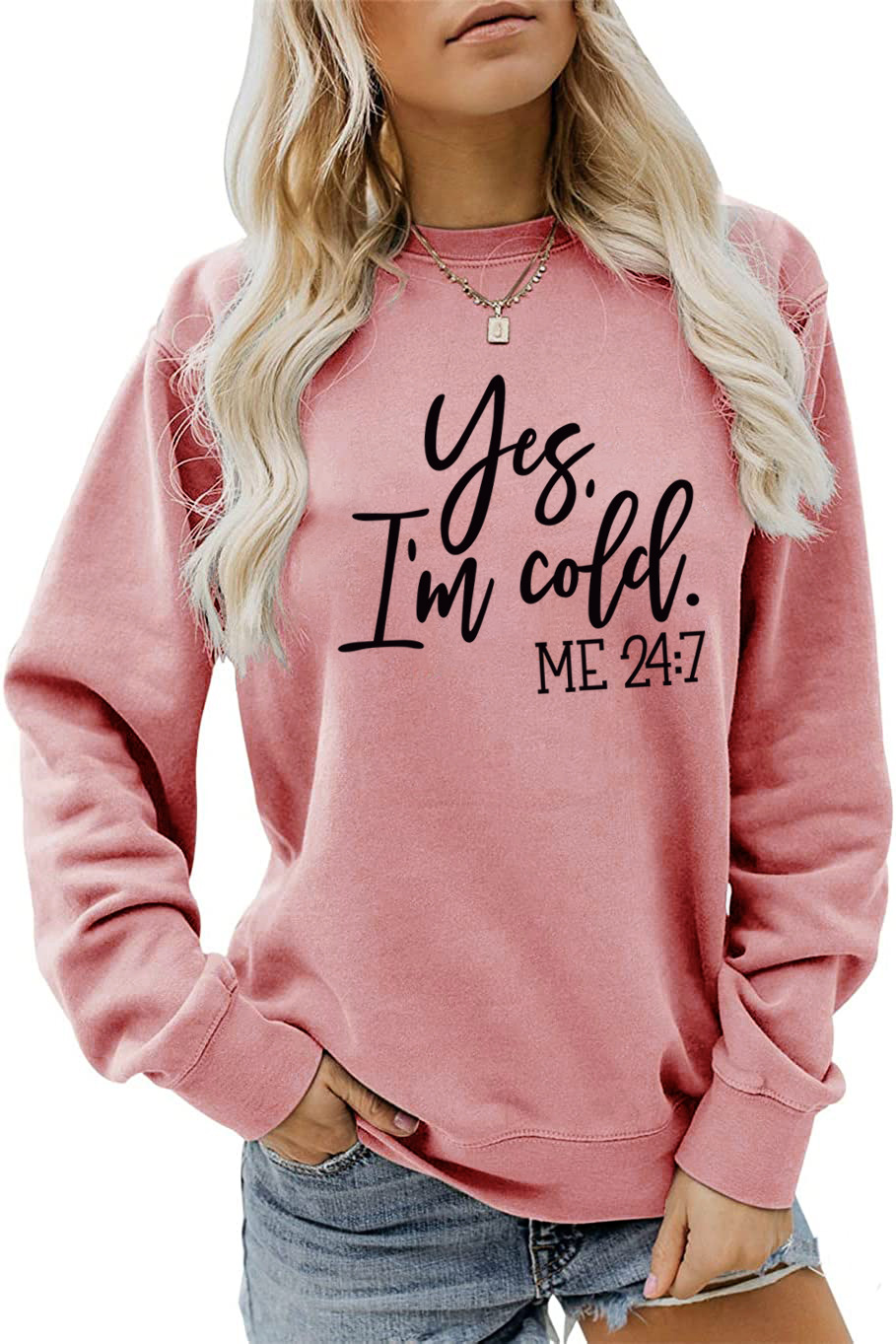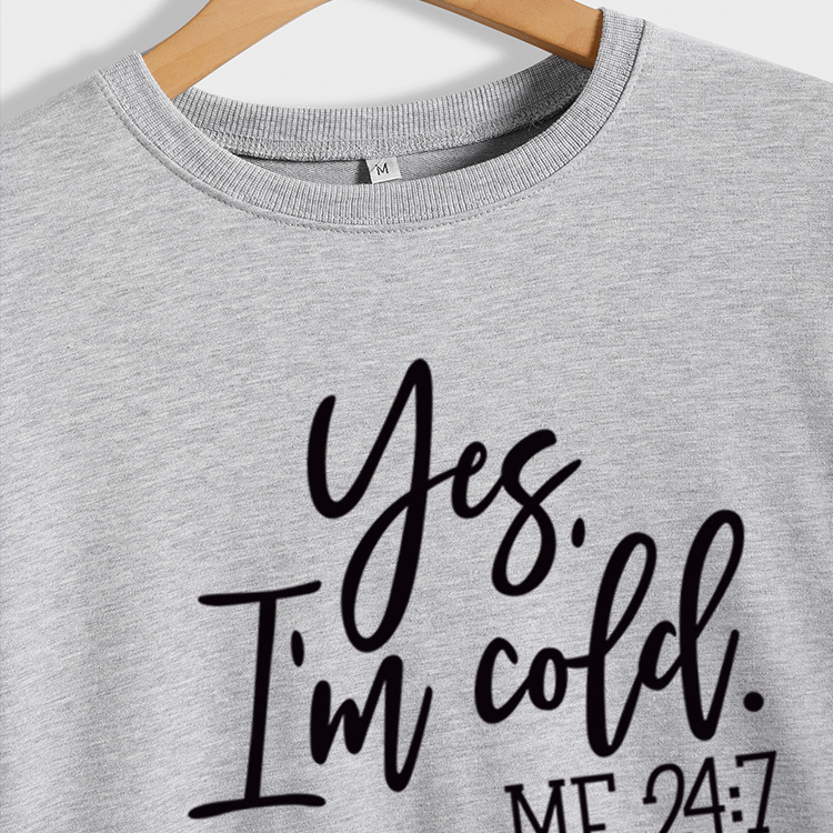 Loose Casual Letter Print Sweatshirt Yes' I M Cold New Round