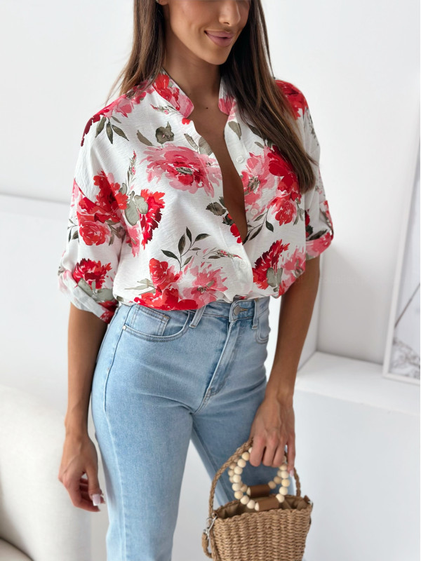 Color: red flowers, blue pattern