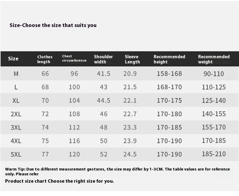 Size: M 45.00kg-52.50kg,L 52.50kg-200kg,XL 70.00kg-80.00kg,2XL 70.00kg-87.50kg,3XL 80.00kg-kg,4XL 87.50kg-95.00kg, 5XL 95.00kg-102.50kg