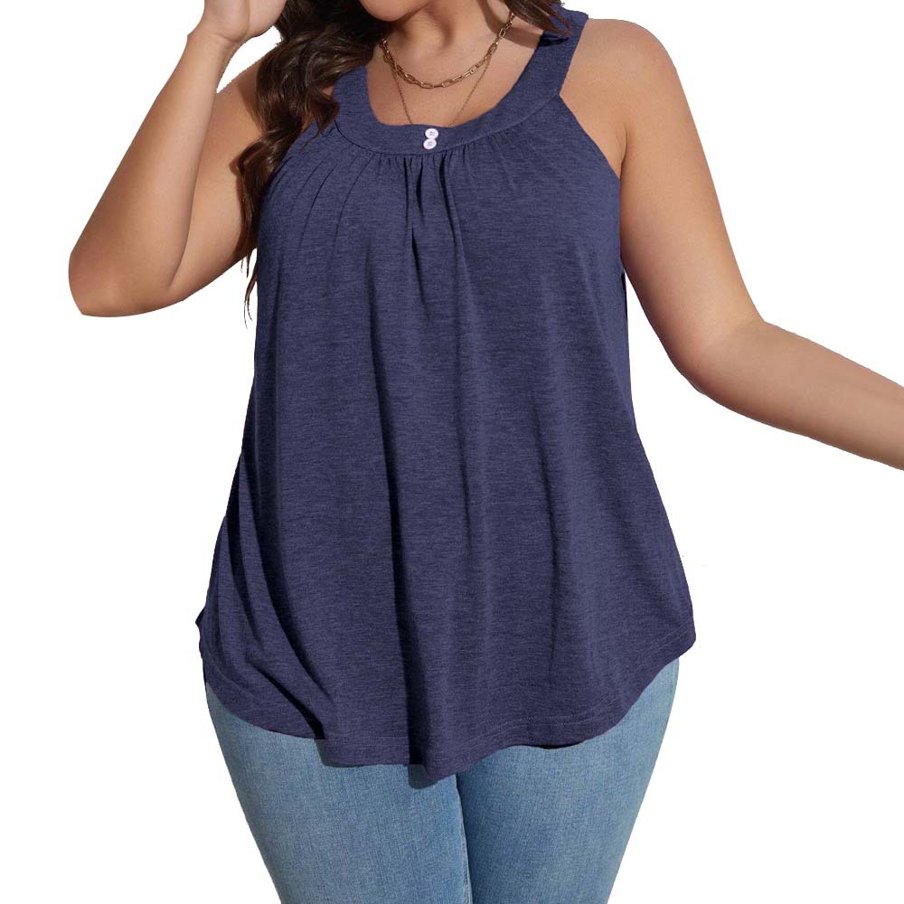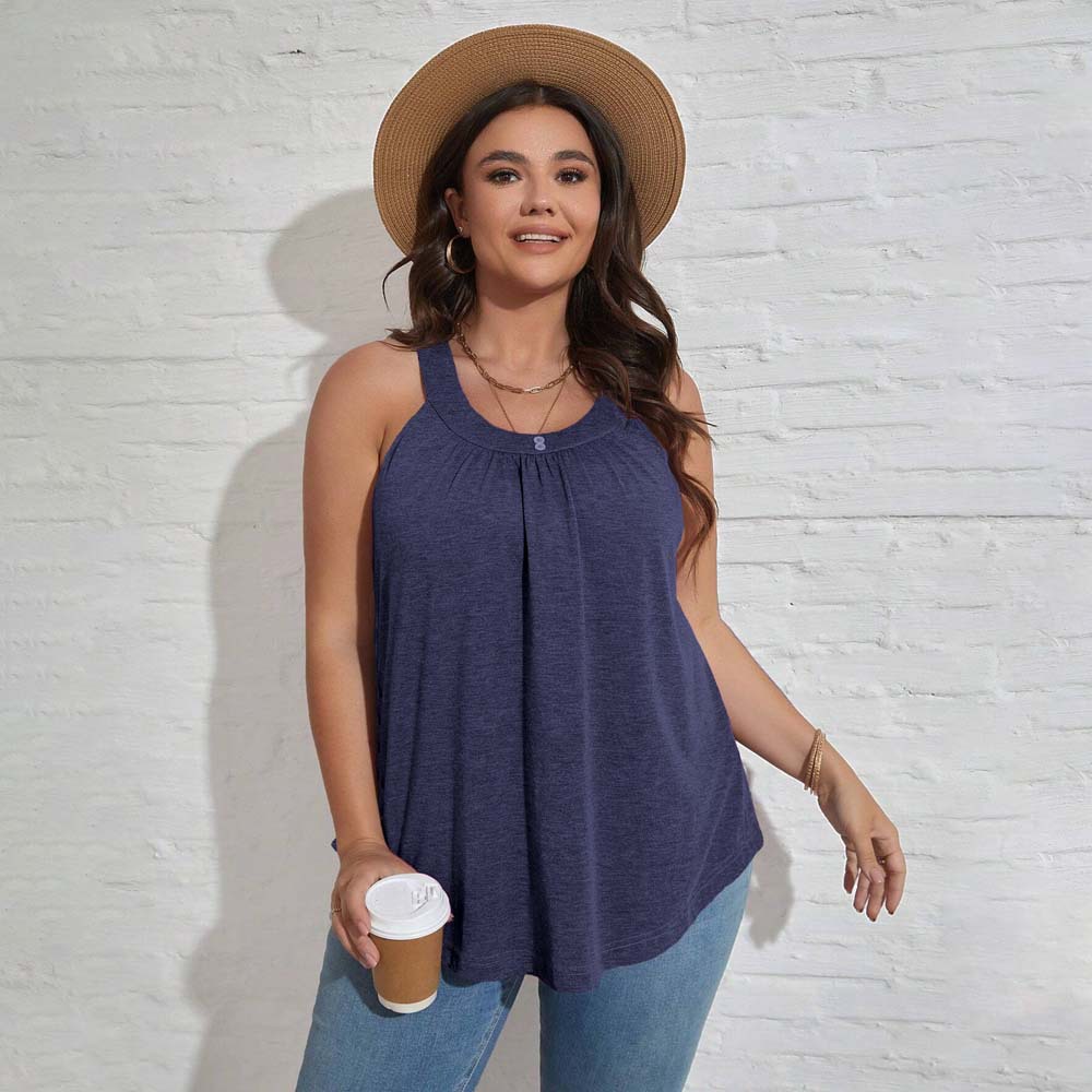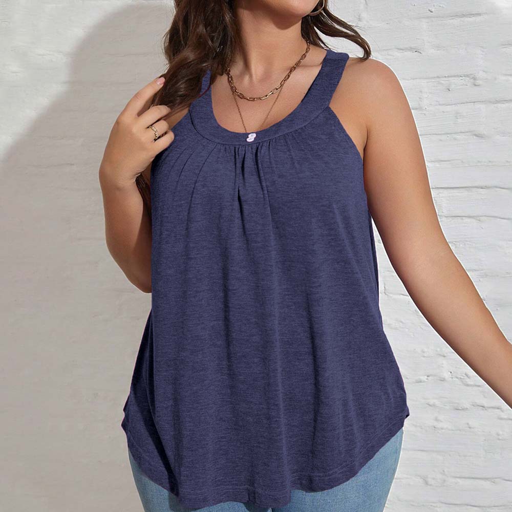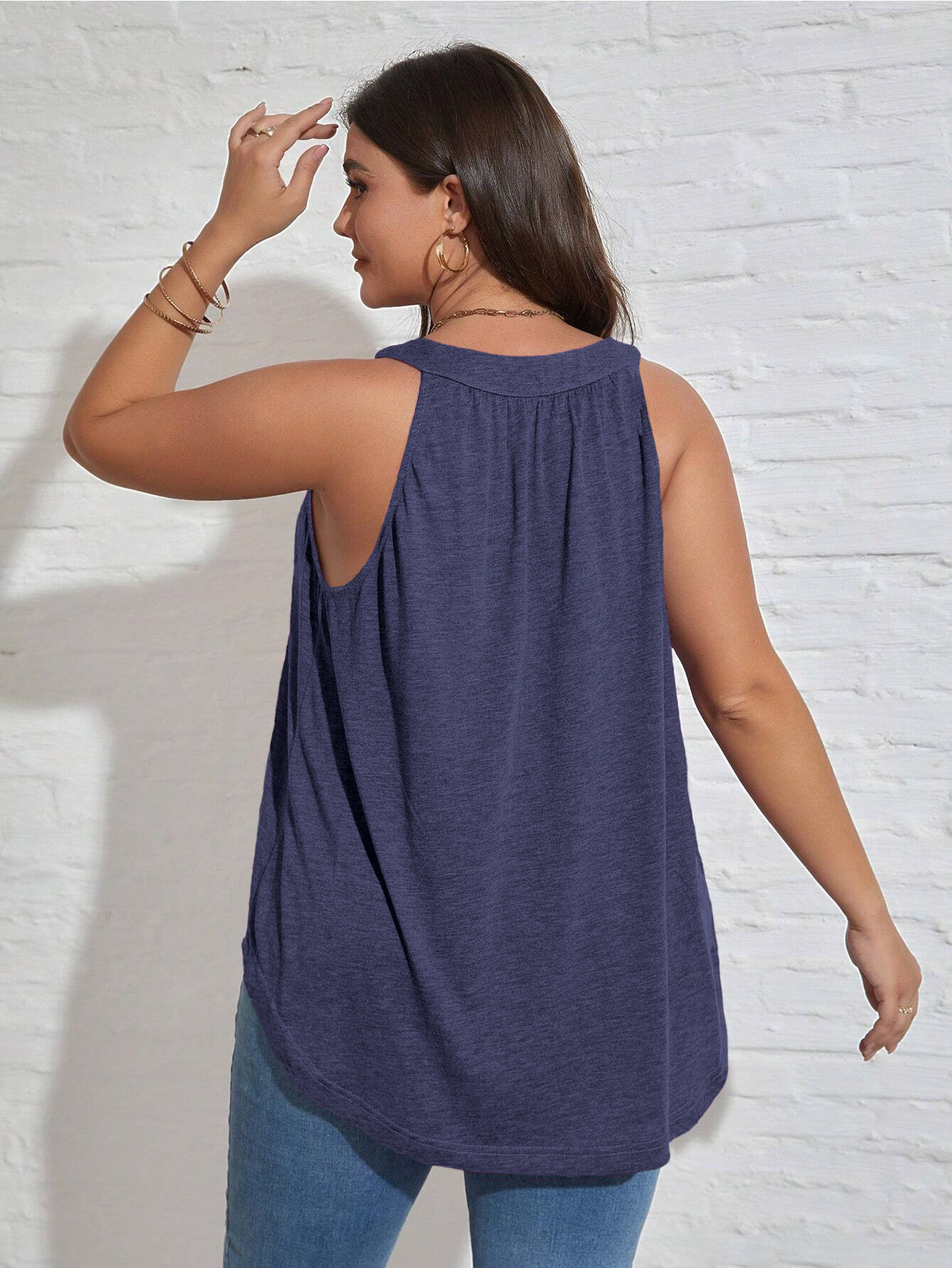 Loose Casual Sleeveless Women's T-shirt With U-neck