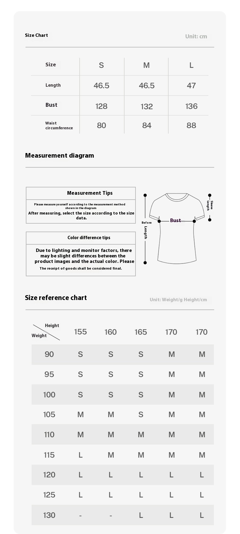 Note:1. Asian sizes are 1 to 2 sizes smaller than European and American people. Choose the larger size if your size between two sizes. Please allow 2-3cm differences due to manual measurement. 2. Please check the size chart carefully before you buy the item, if you don't know how to choose size, please contact our customer service. 3.As you know, the different computers display colors differently, the color of the actual item may vary slightly from the following images.