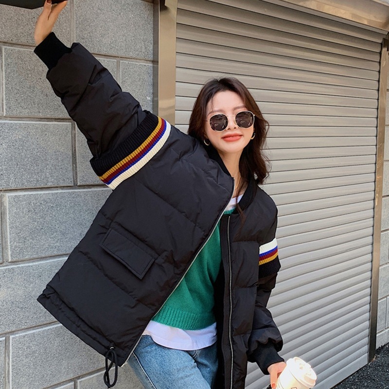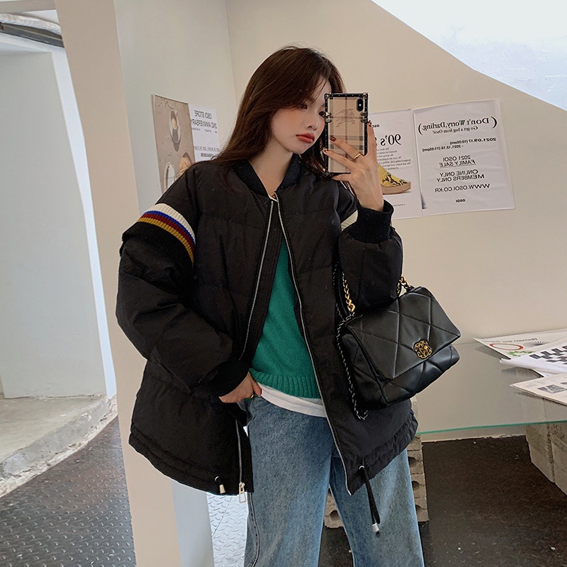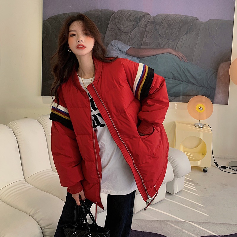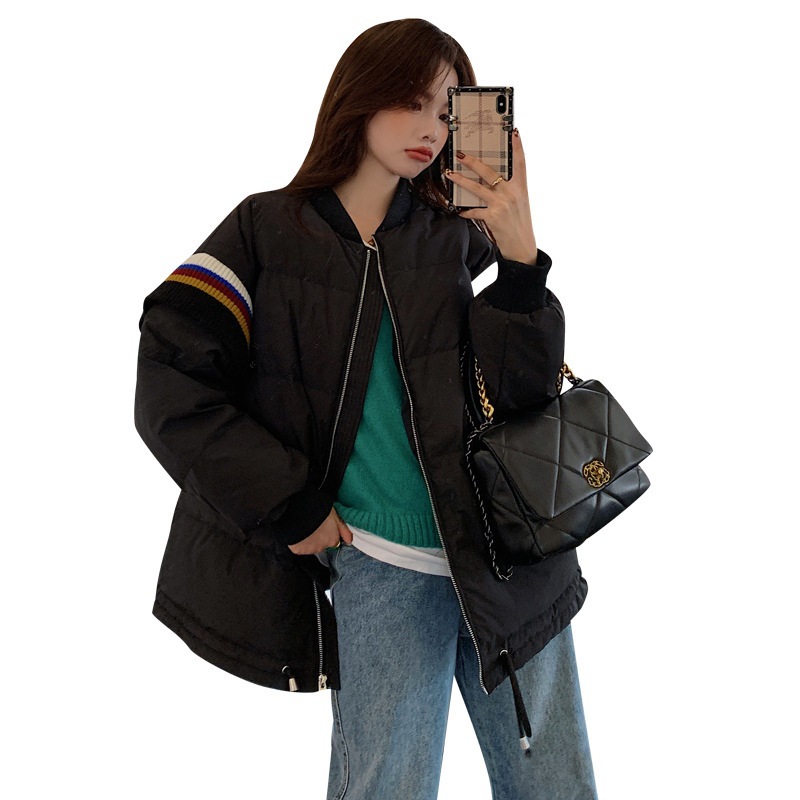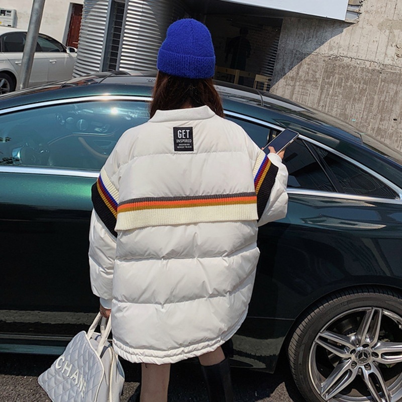 Loose Contrast Knit Striped Panel Down Jacket