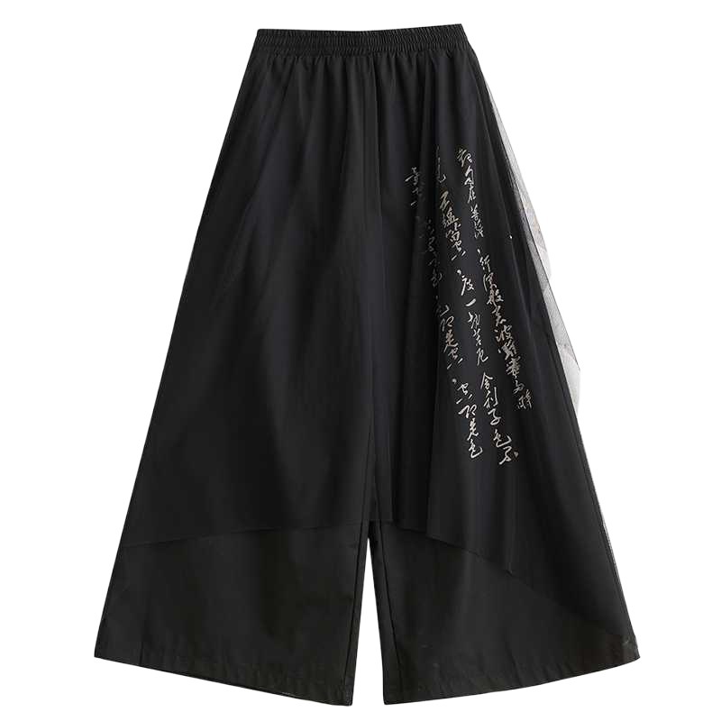 Loose Dark Printed Personality Mesh Stitching Culottes