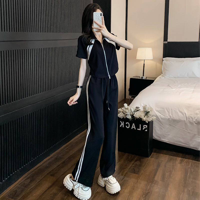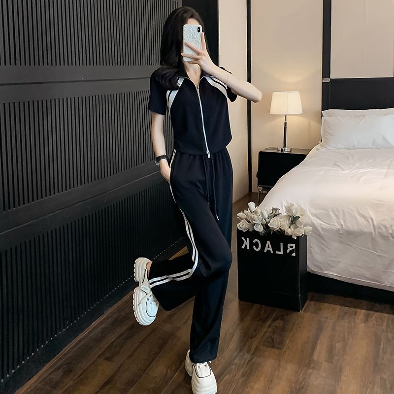 Loose Fashion Age-reducing Casual Sporty Wide-leg Pants Two-piece Set