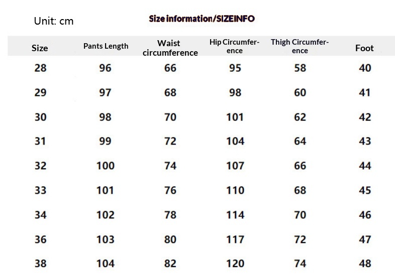 Sizes: 28, 29, 30, 31, 32, 33, 34, 35, 36, 37, 38