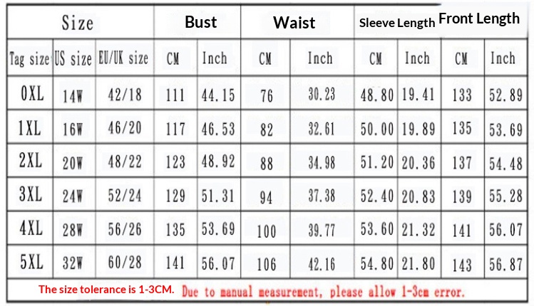Sizes: XL, XXL, XXXL, 0XL, 4XL, 5XL