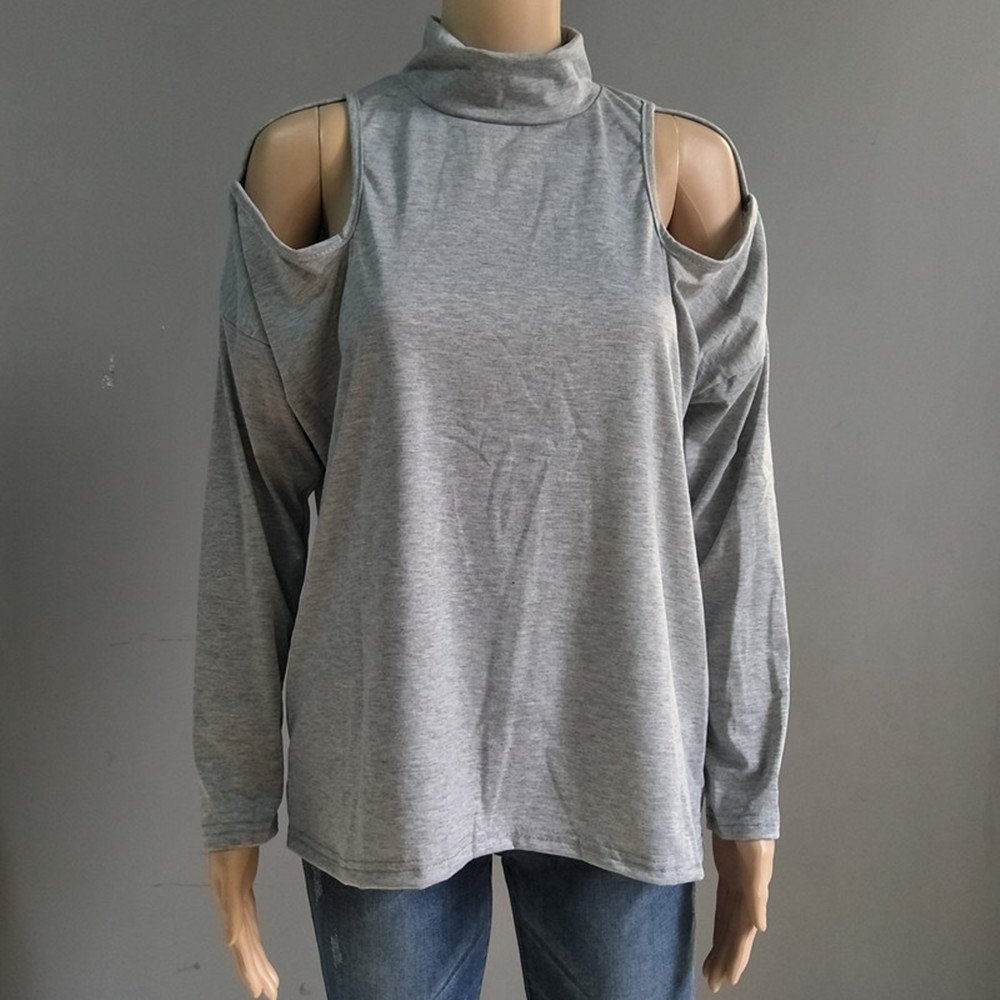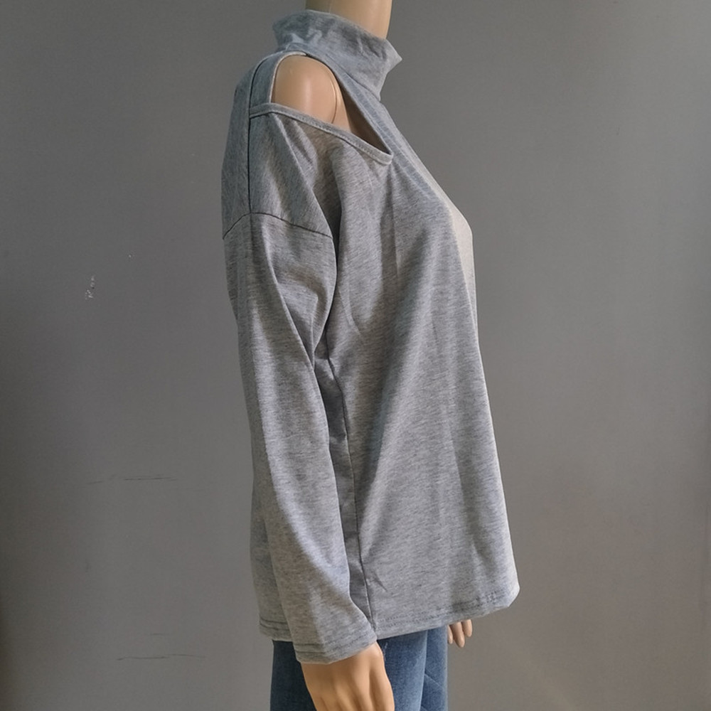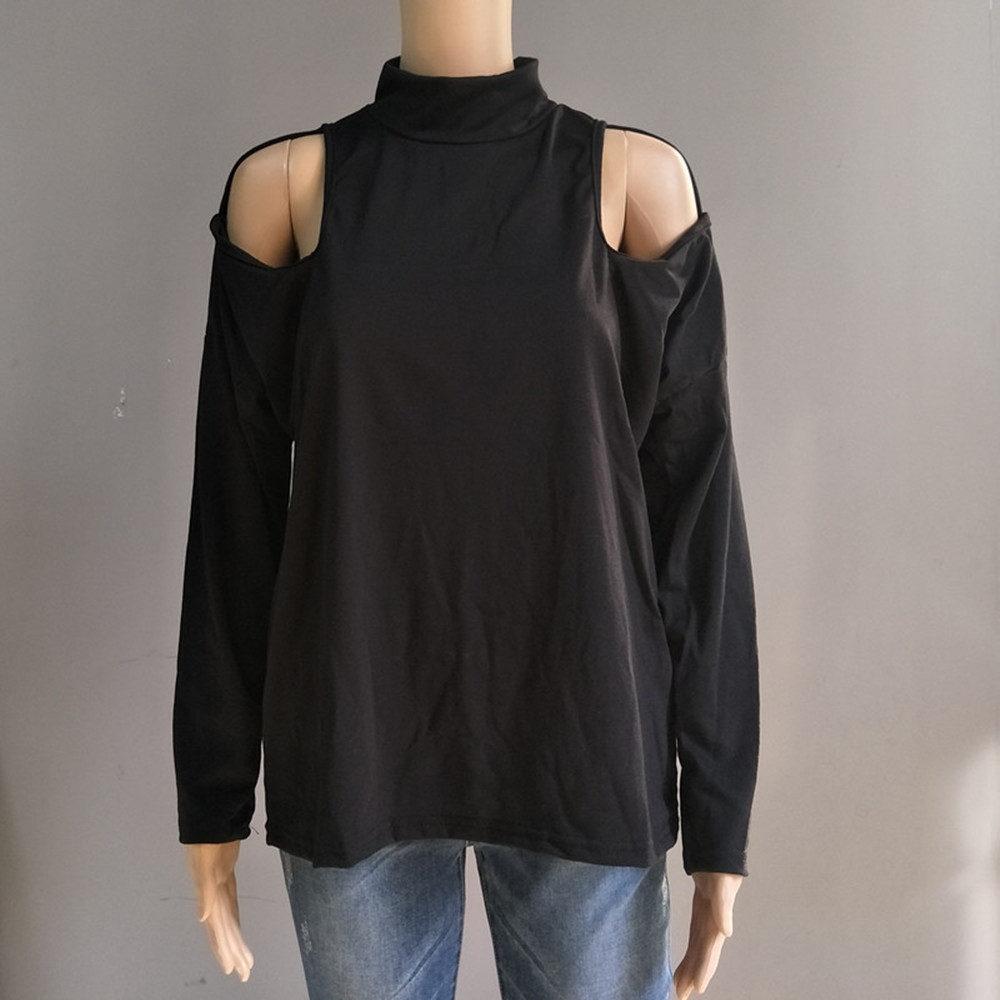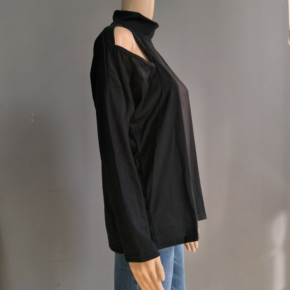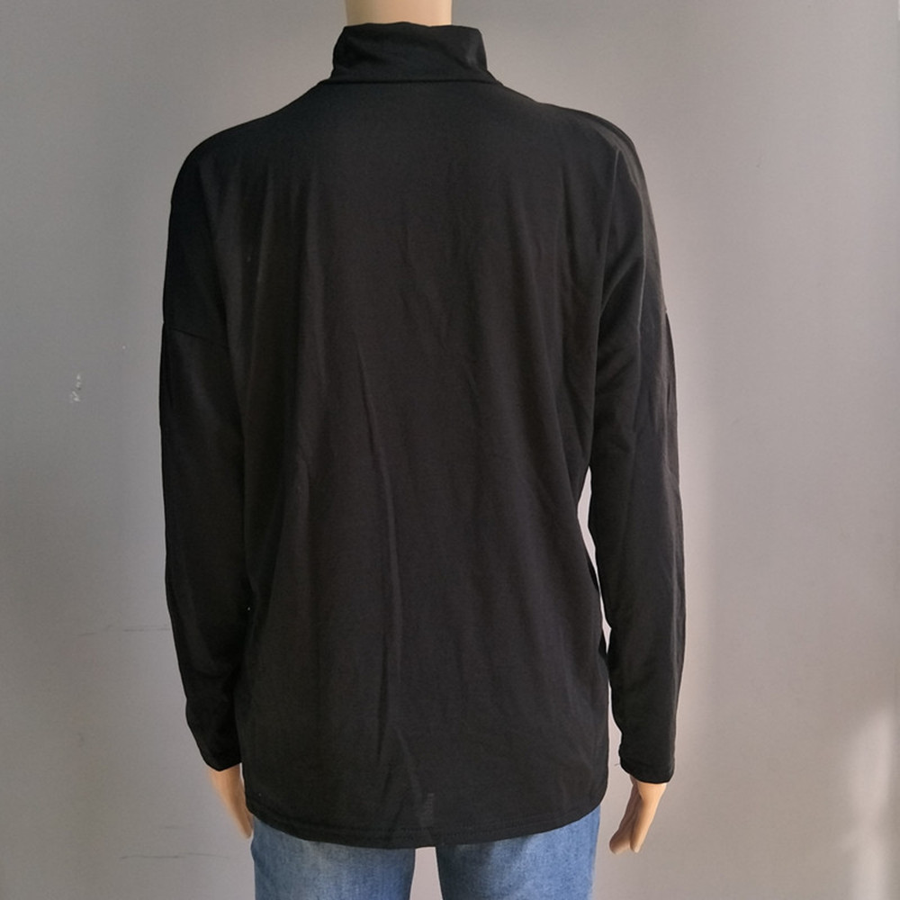 Loose Fit T Shirt With A Mock Turtleneck And Long Sleeves