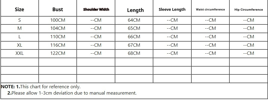 Note: 1. Asian sizes are 1 to 2 sizes smaller than European and American people. Choose the larger size if your size between two sizes. Please allow 2-3cm differences due to manual measurement. 2. Please check the size chart carefully before you buy the item, if you don't know how to choose size, please contact our customer service. 3.As you know, the different computers display colors differently, the color of the actual item may vary slightly from the following images.