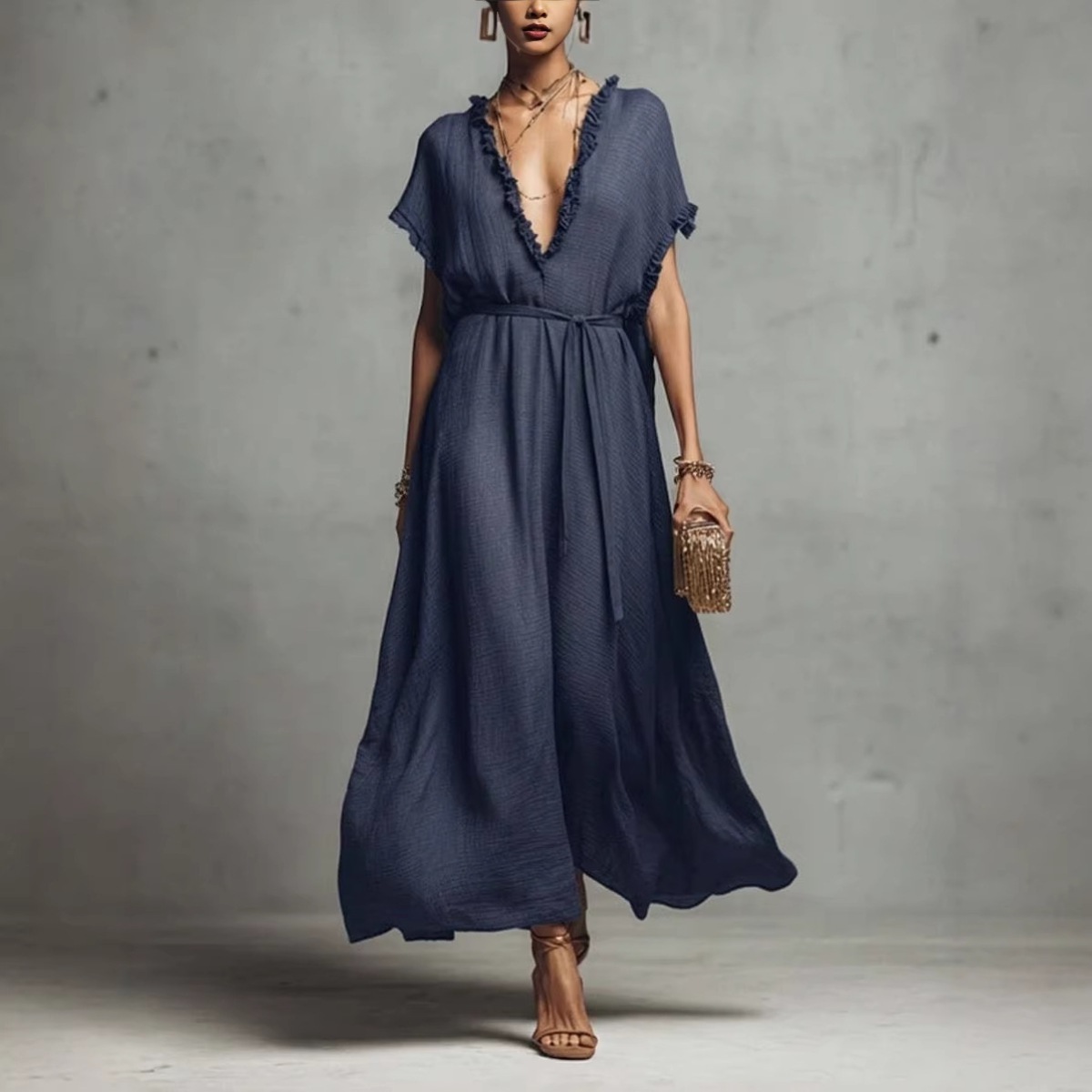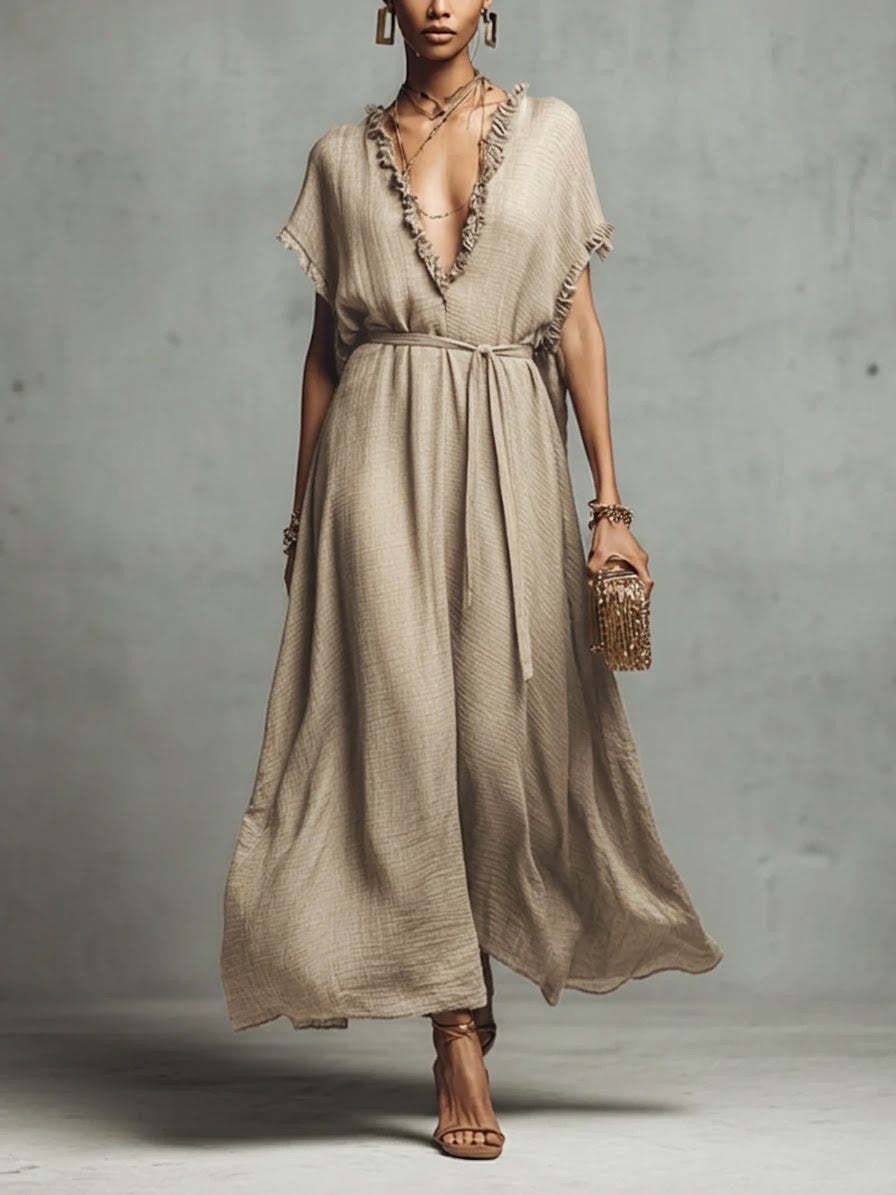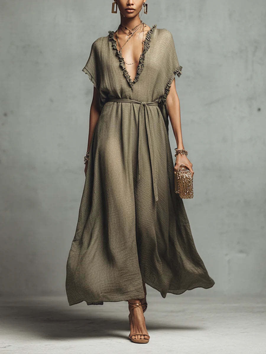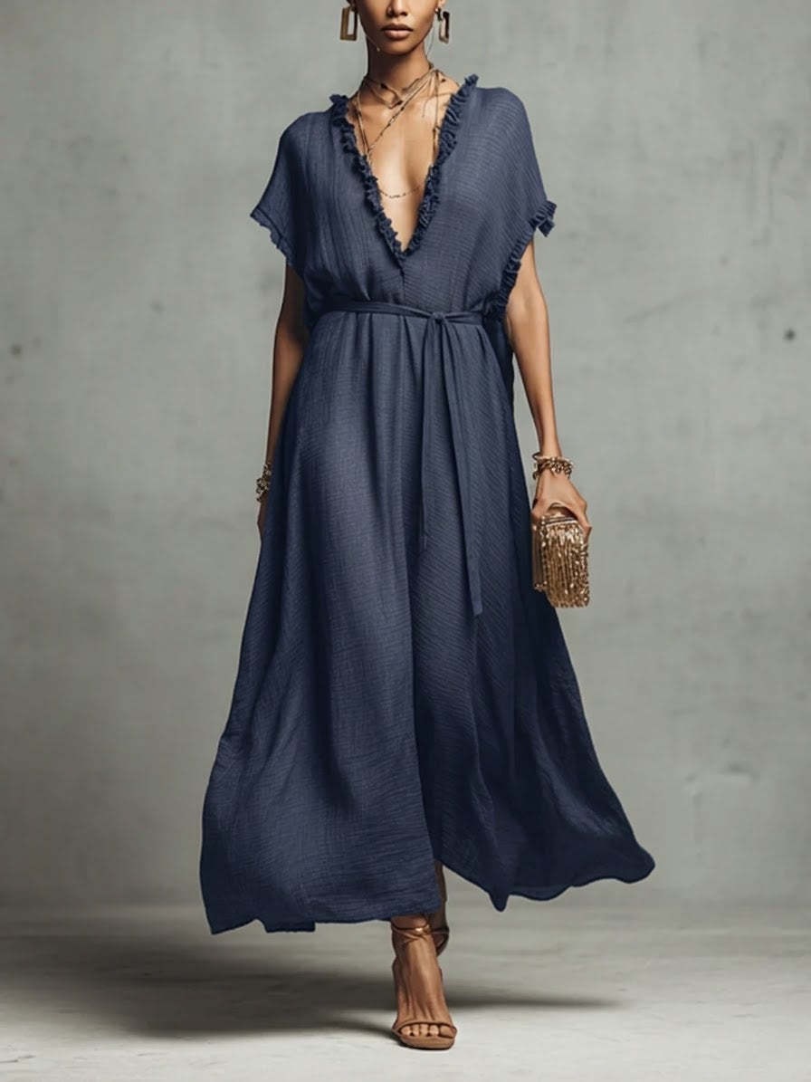 Loose-fit V-neck Casual Chic Womens Dress