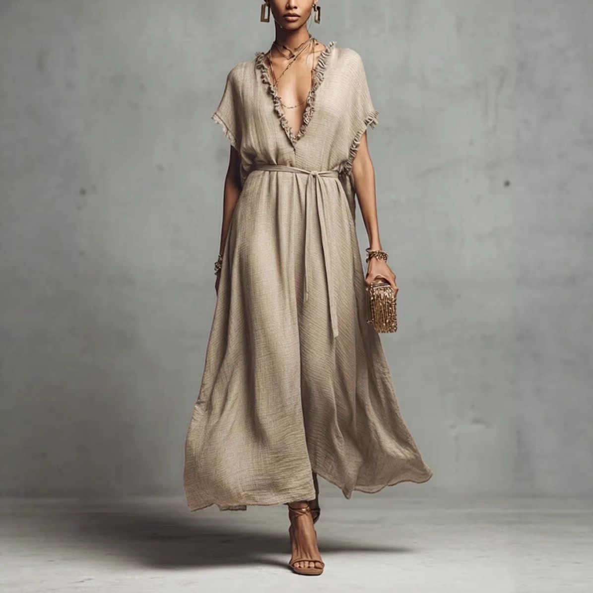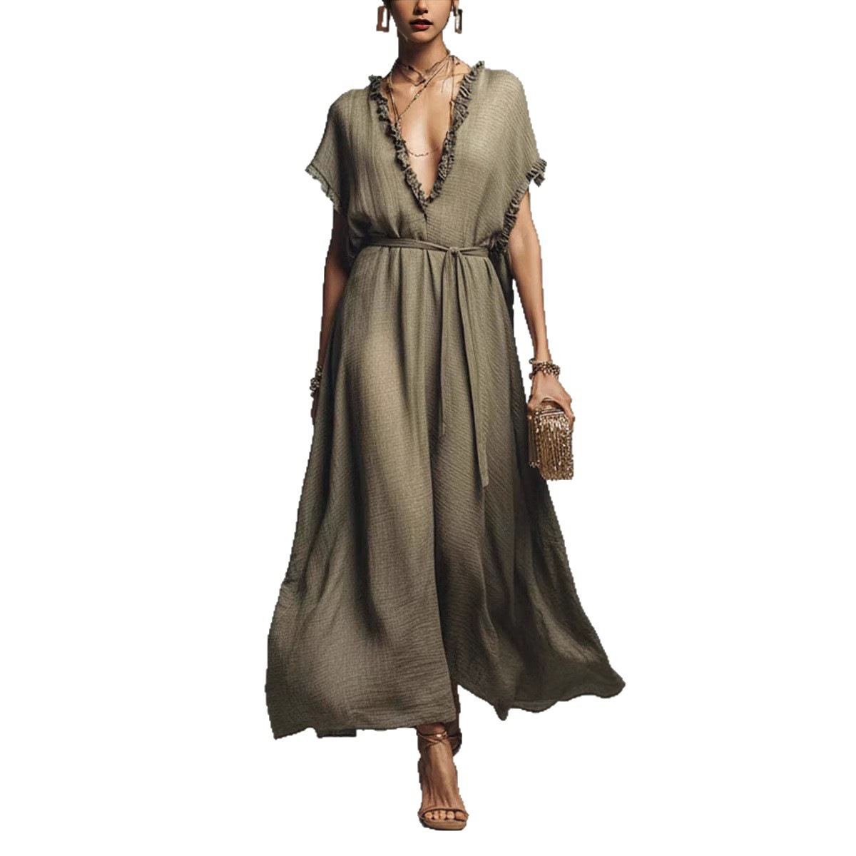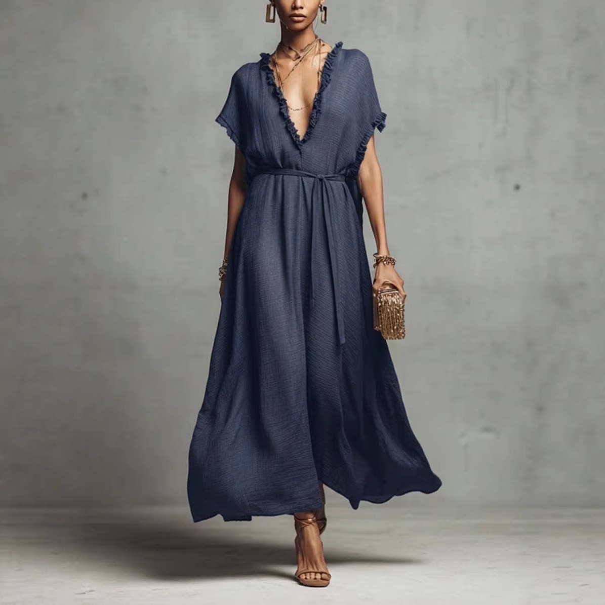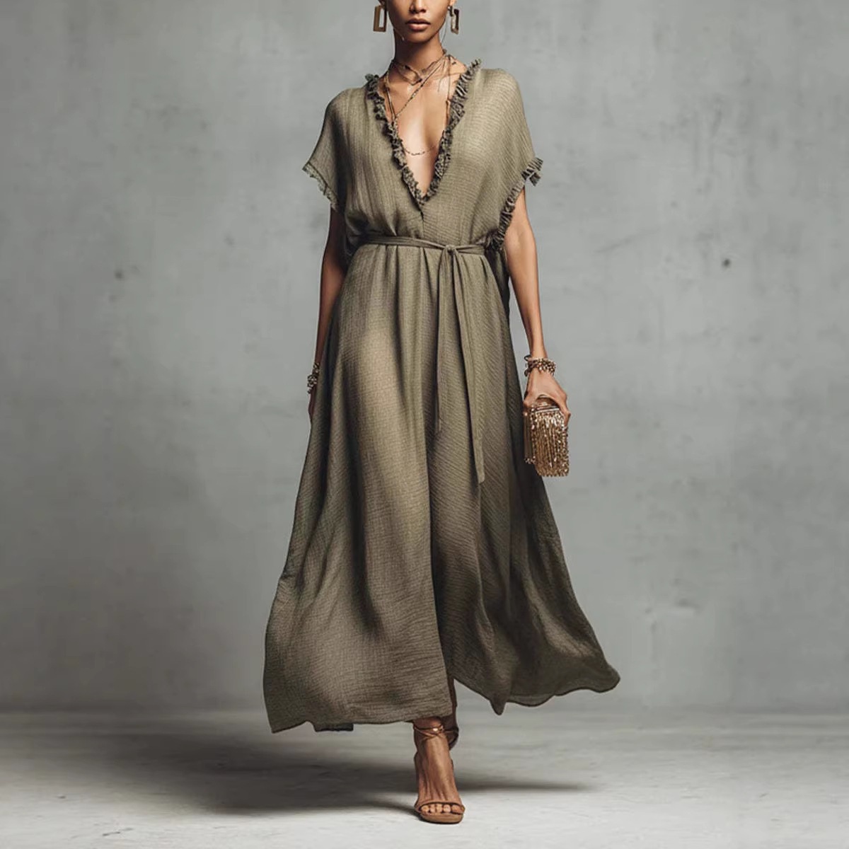 Loose-fit V-neck Casual Chic Womens Dress
