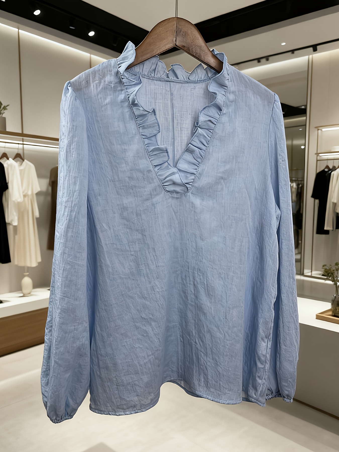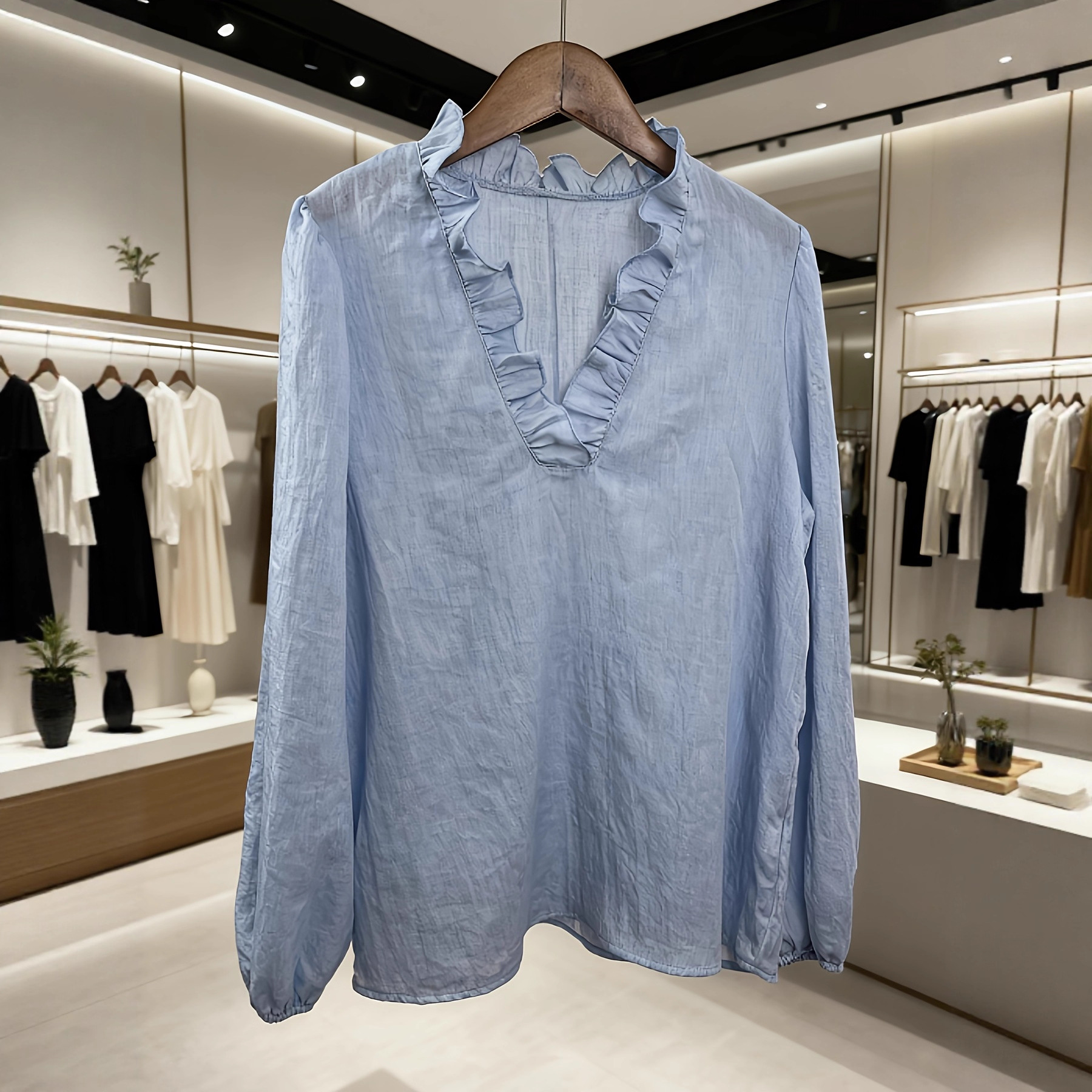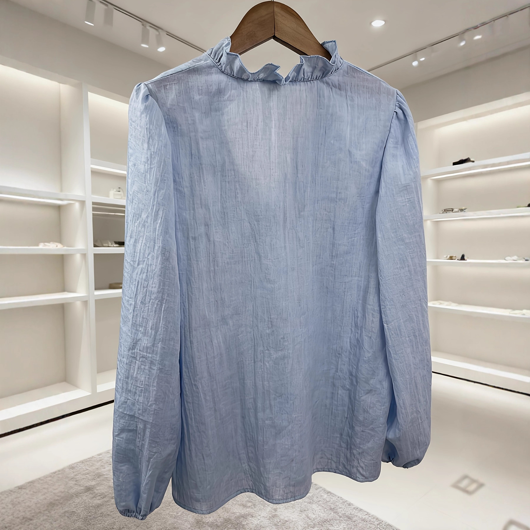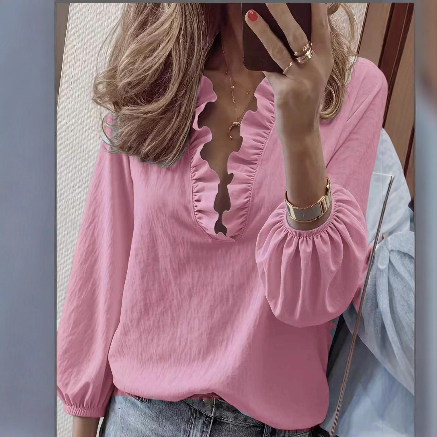 Loose-fit Vintage Ruffled V-neck Puffed Sleeves