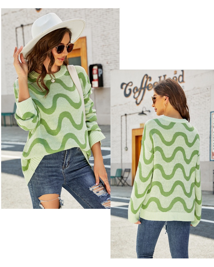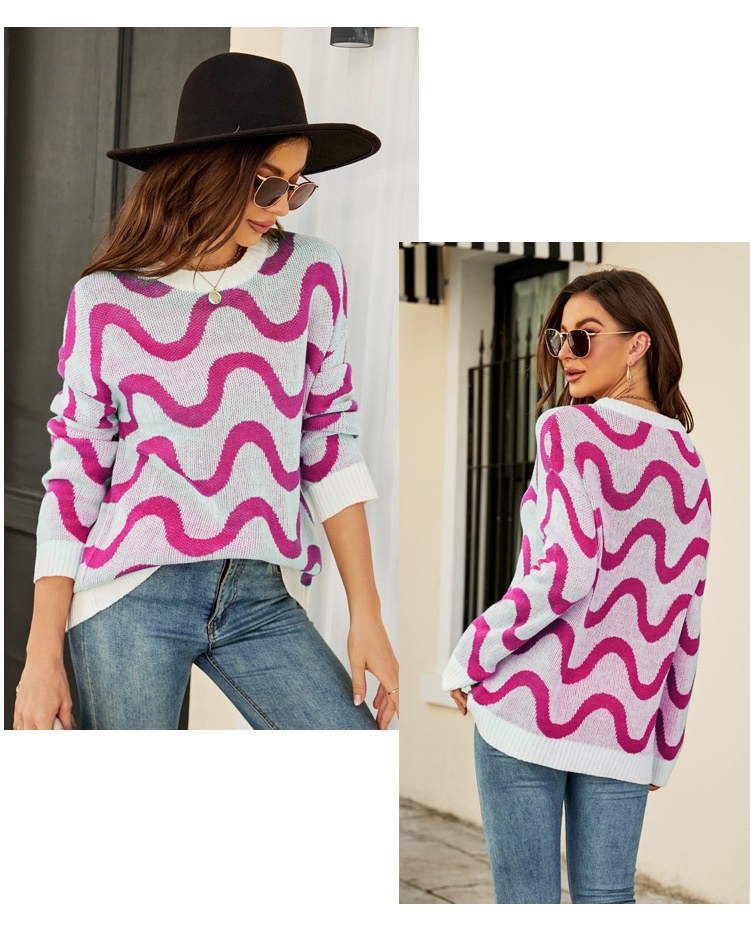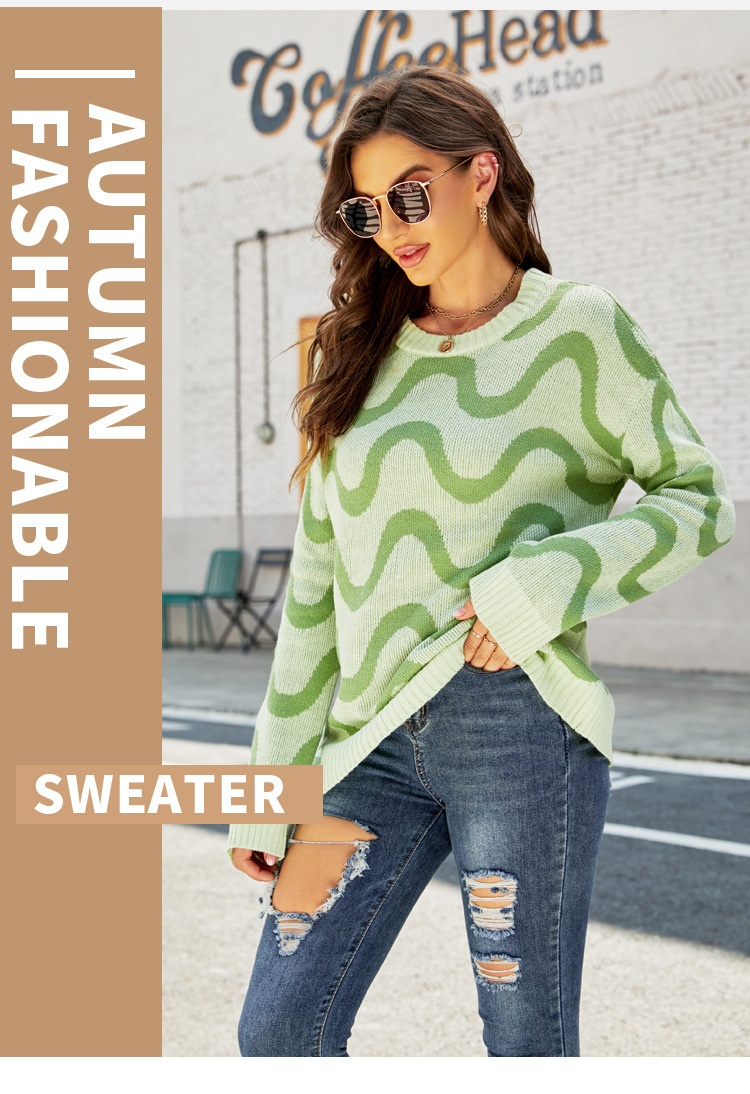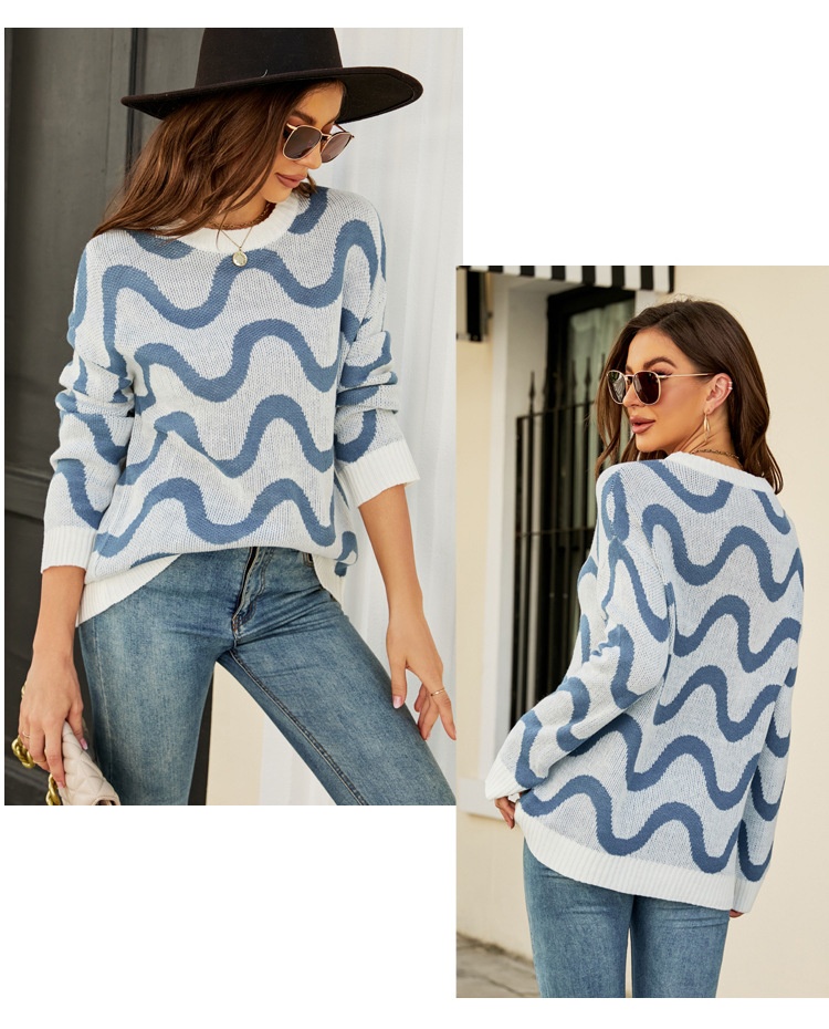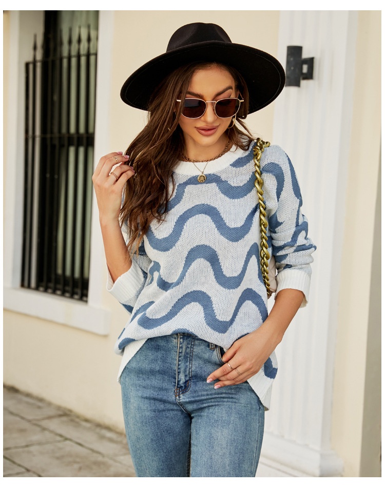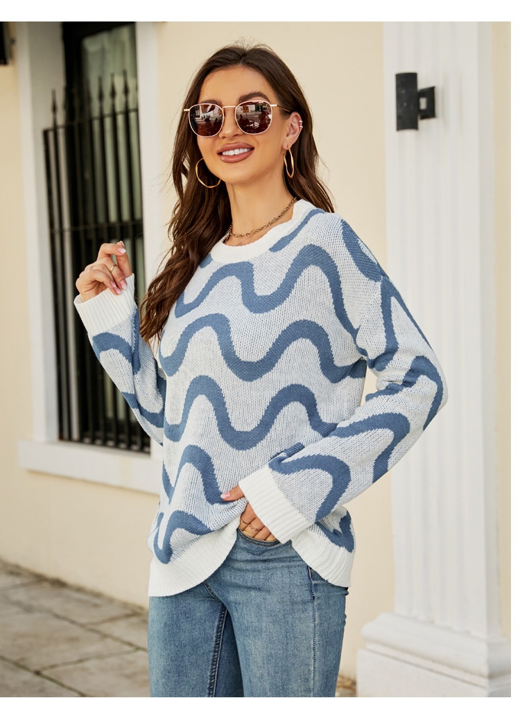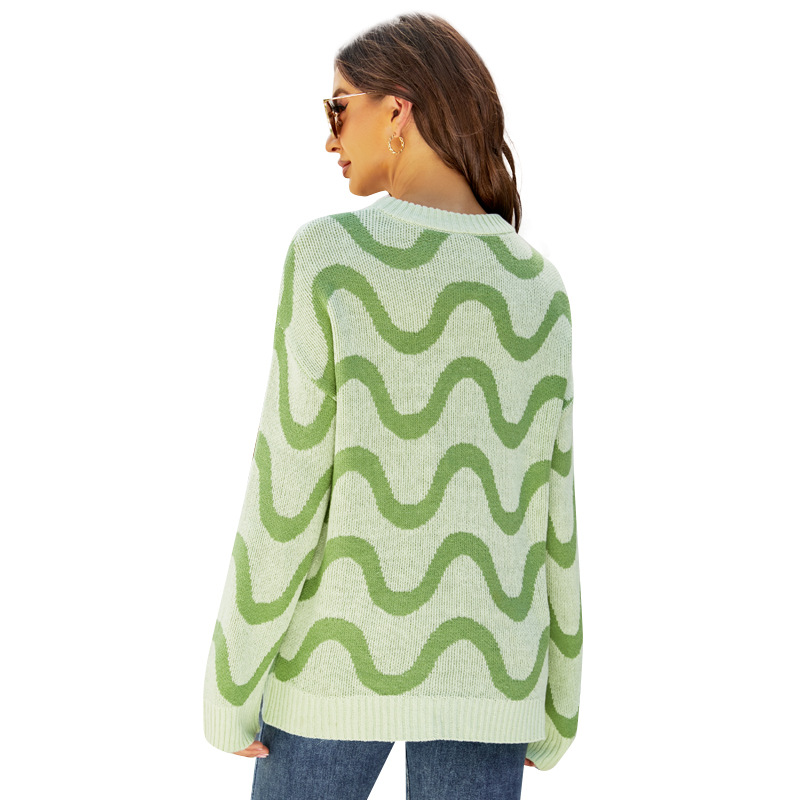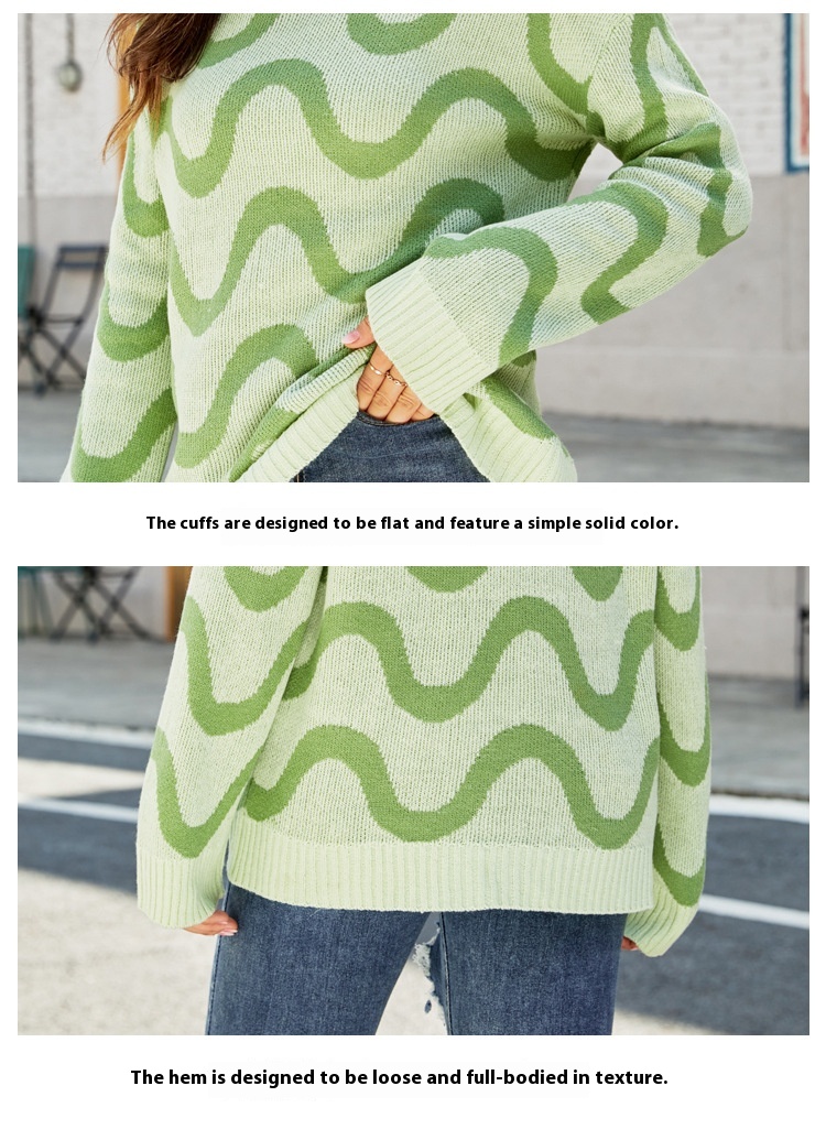 Loose-fitting Casual Round-neck Wave Brocade Sweater