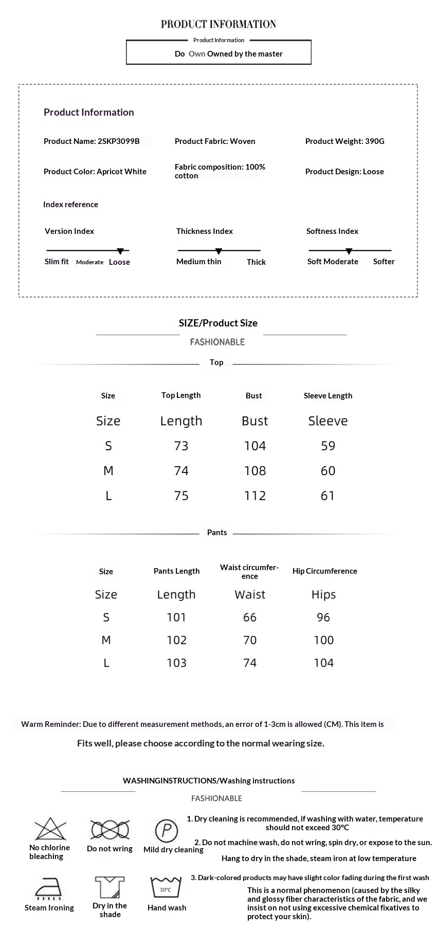 Sizes: S, M, L