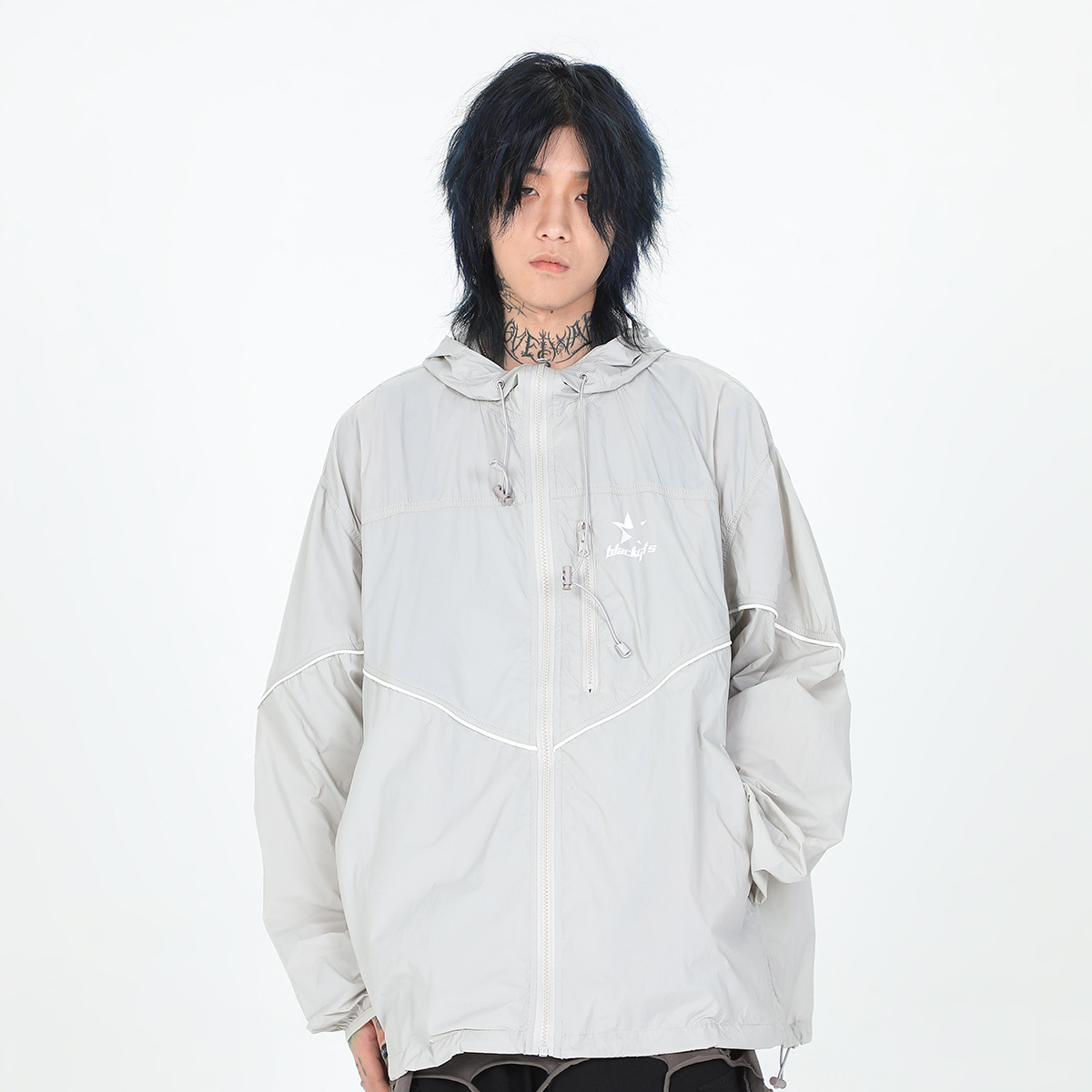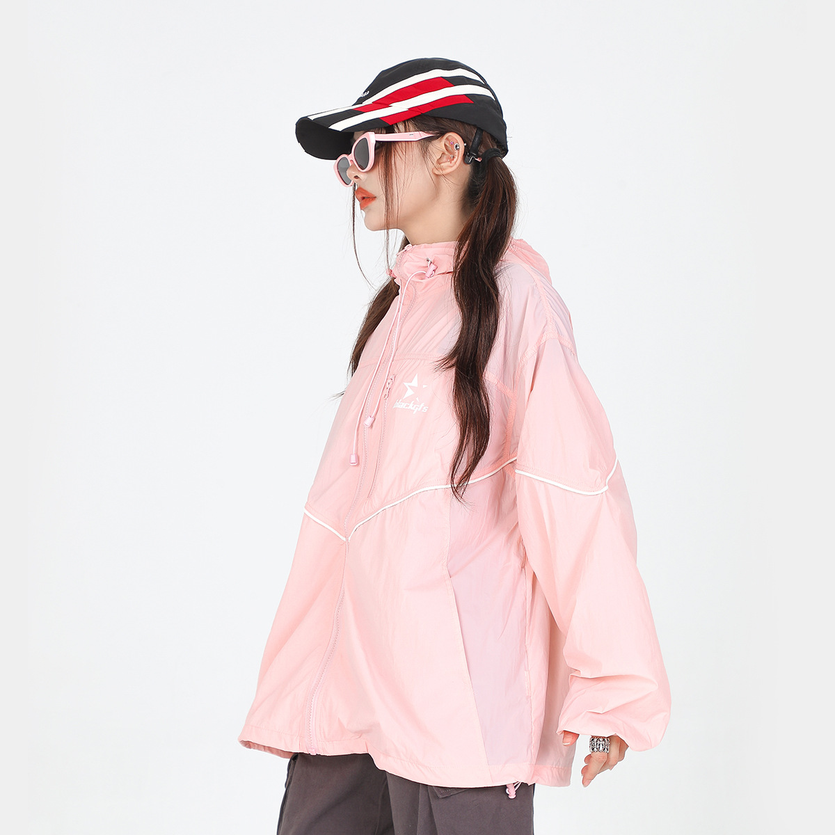 Loose-fitting Lightweight Thin Reflective Stripe Japanese Style Hooded Sun Protection