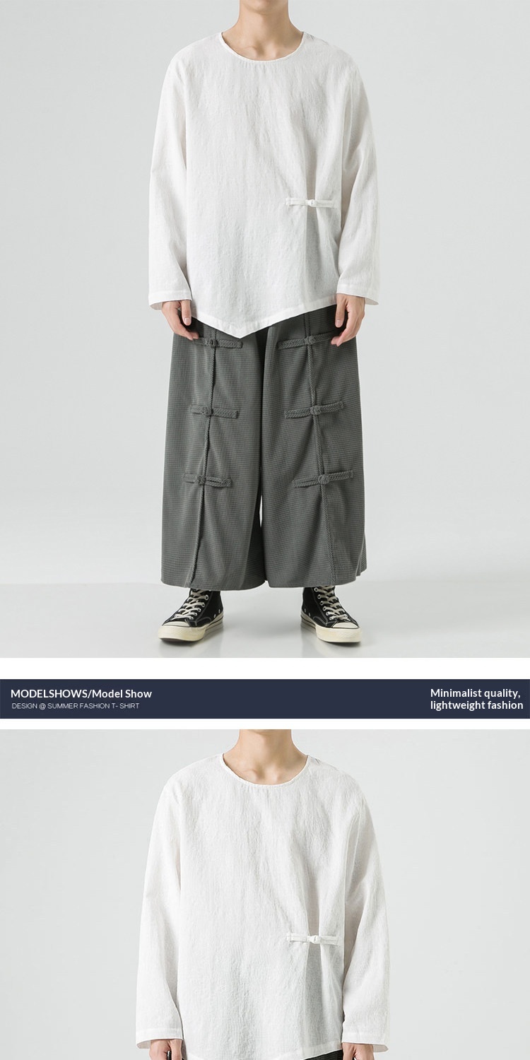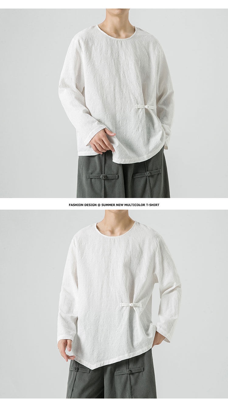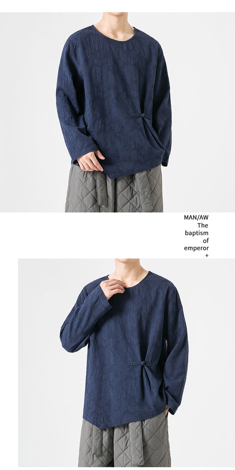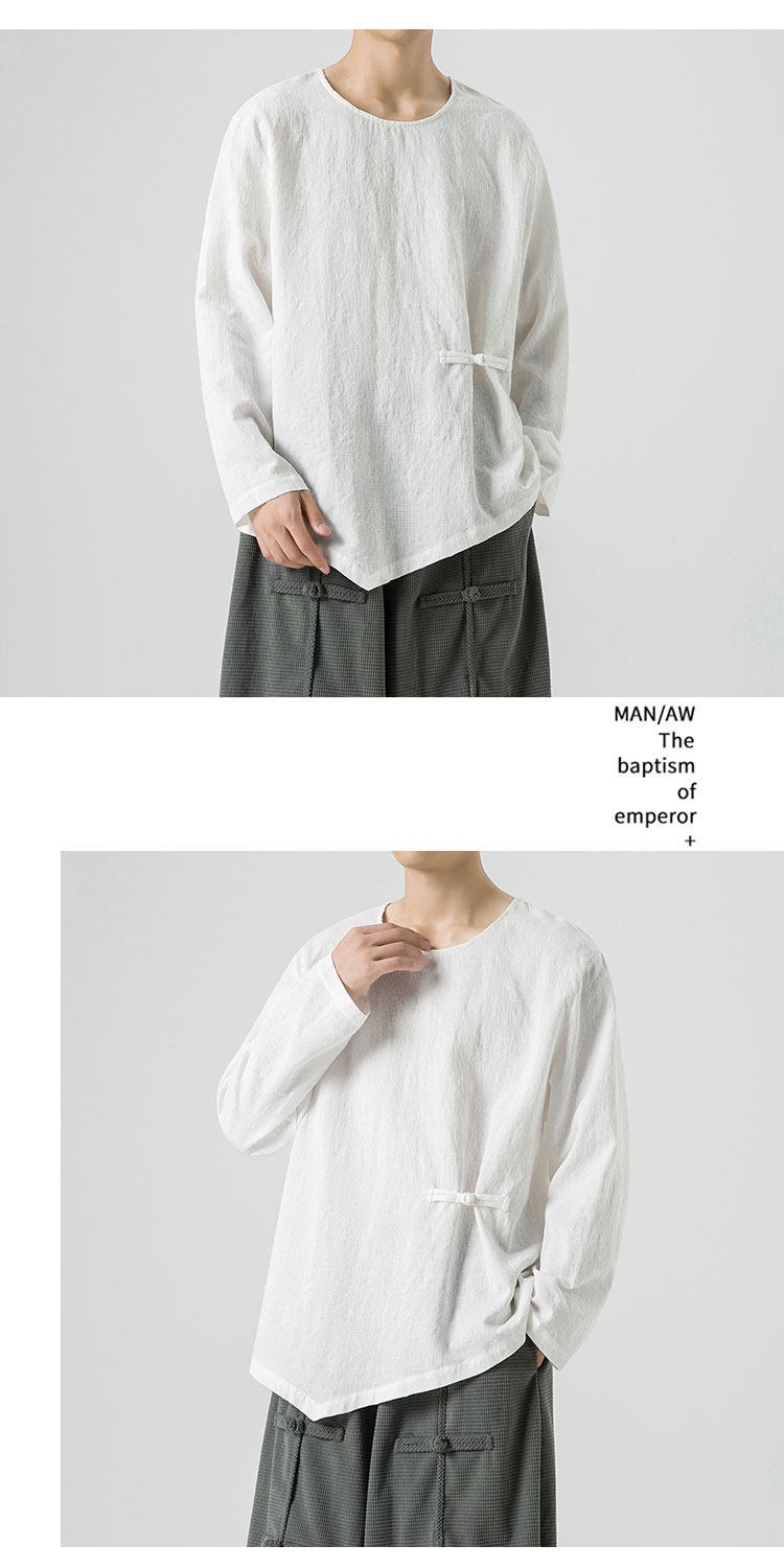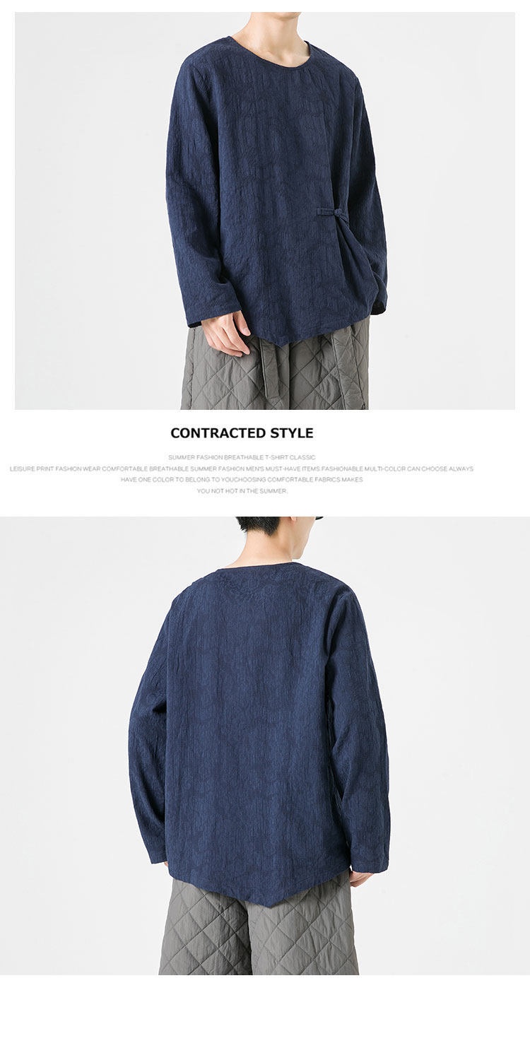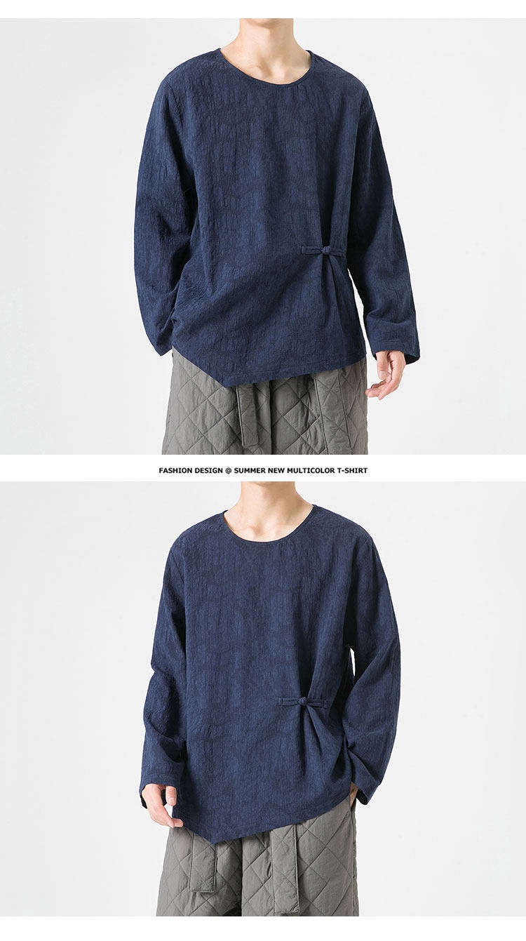 Loose-fitting Plus-size Cotton-linen Crew-neck Pullover Long-sleeve T-shirt