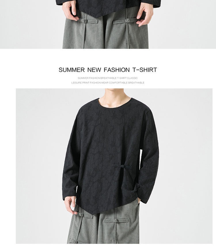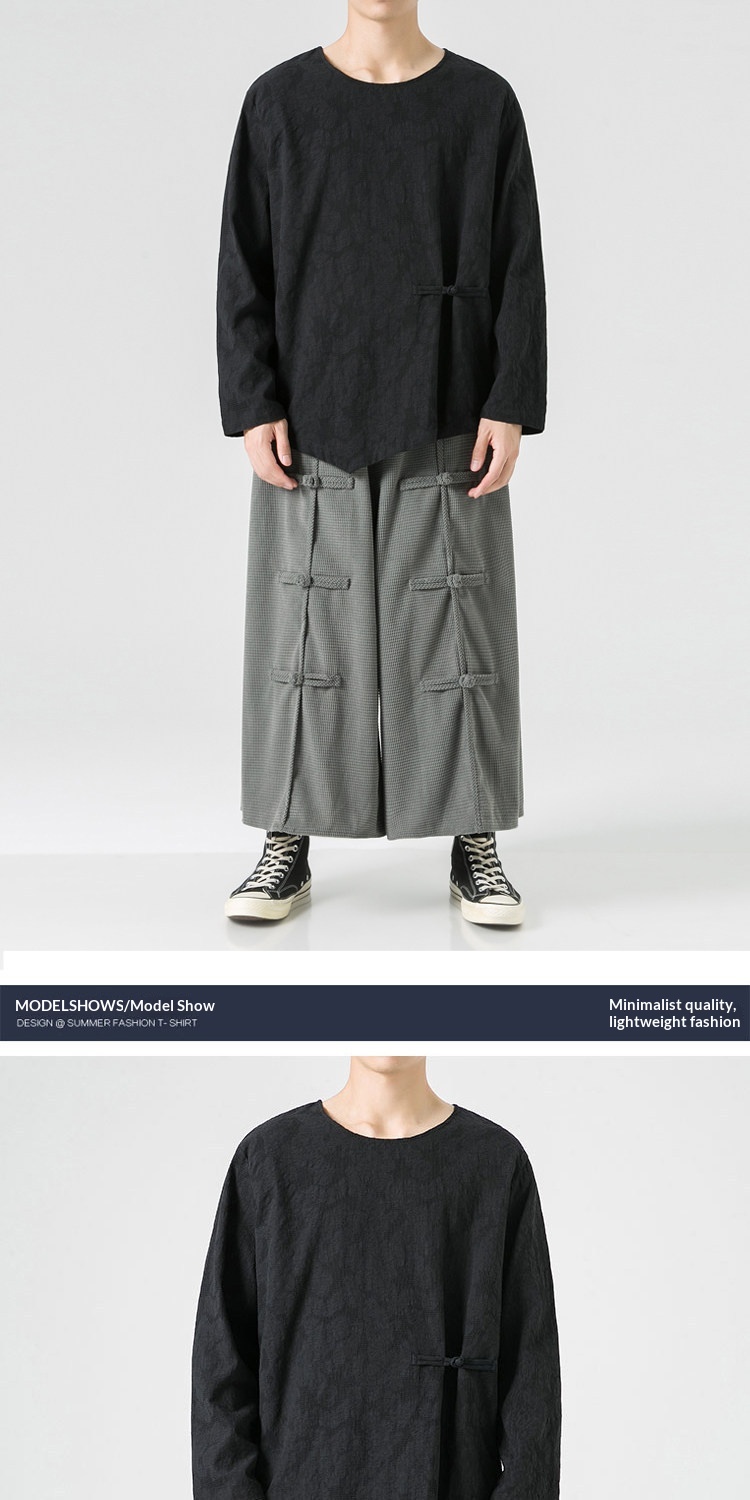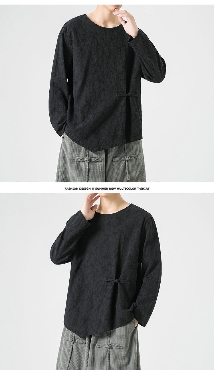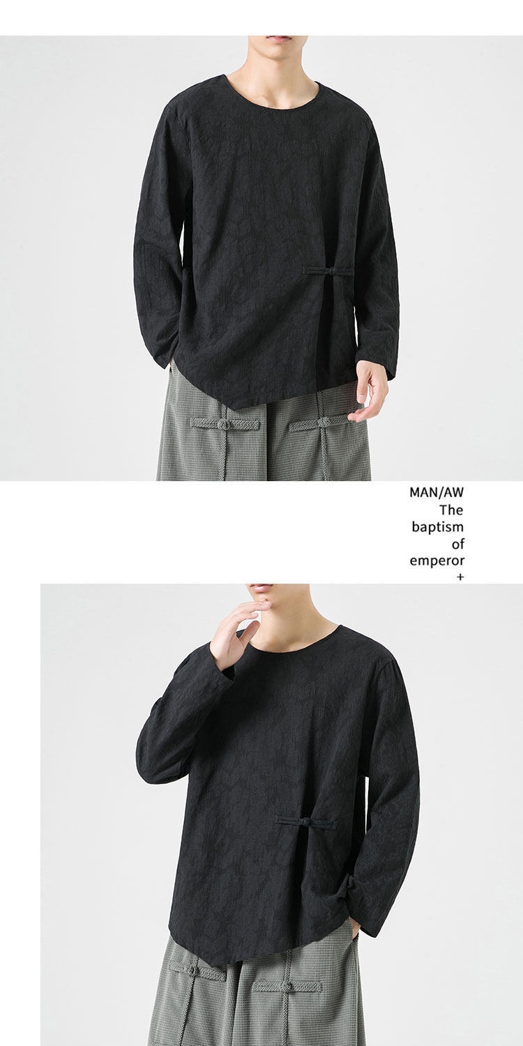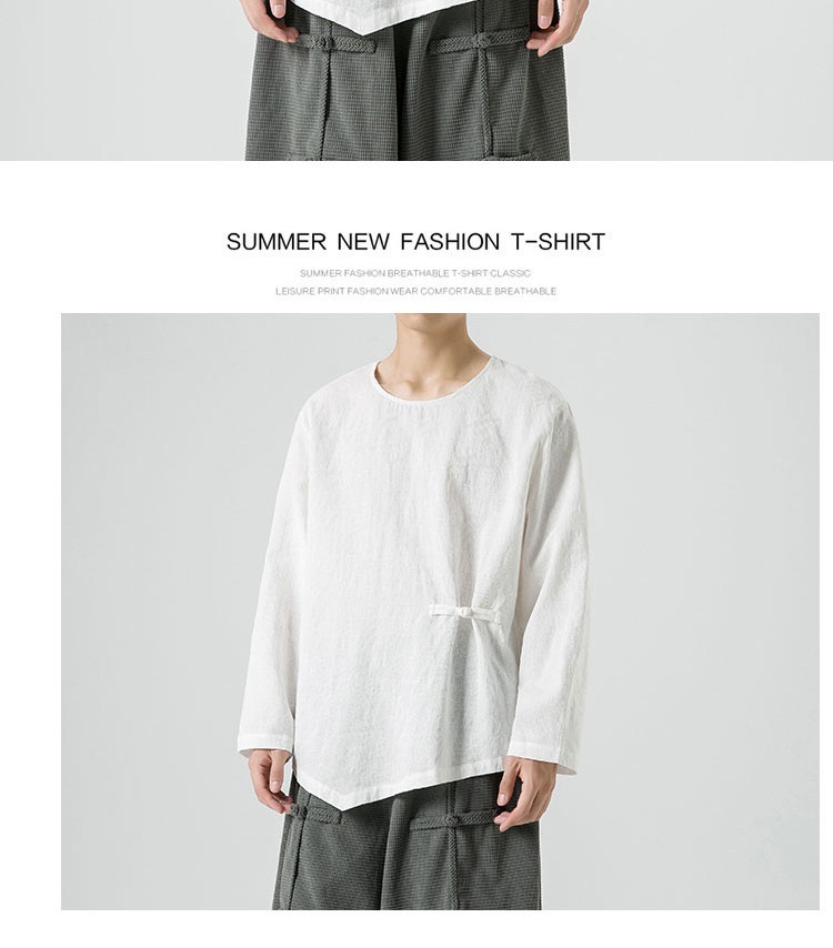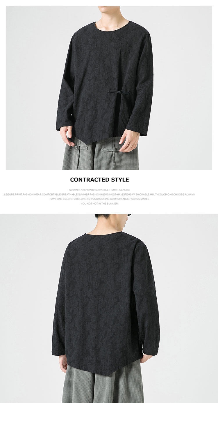 Loose-fitting Plus-size Cotton-linen Crew-neck Pullover Long-sleeve T-shirt